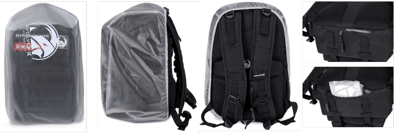 雨よけカバーを付けることにより、アウトドア用のリュックとしても使えます。