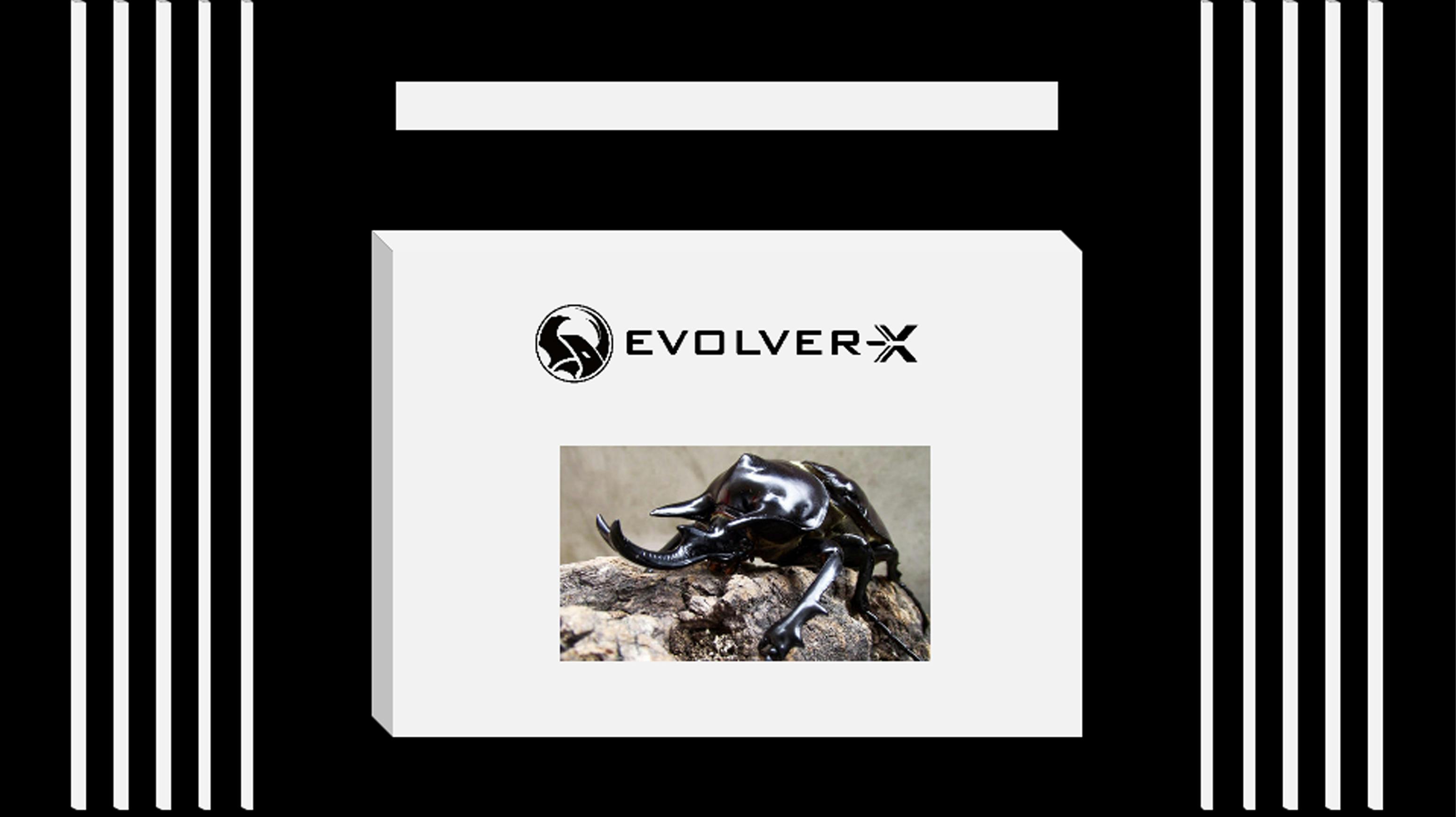 カブトムシは、日本中の誰もが知っている昆虫界の王様です。カブトムシが好きだという人も多いのではないでしょうか。「EVOLVER-X」のロゴは、そんなカブトムシの輪郭をもとに考案しました。このロゴには、私たちが皆さんにエネルギーを与え続けられるように、そして私たちがブランド創設時の初心と夢をいつも忘れないように、という希望を込めました。