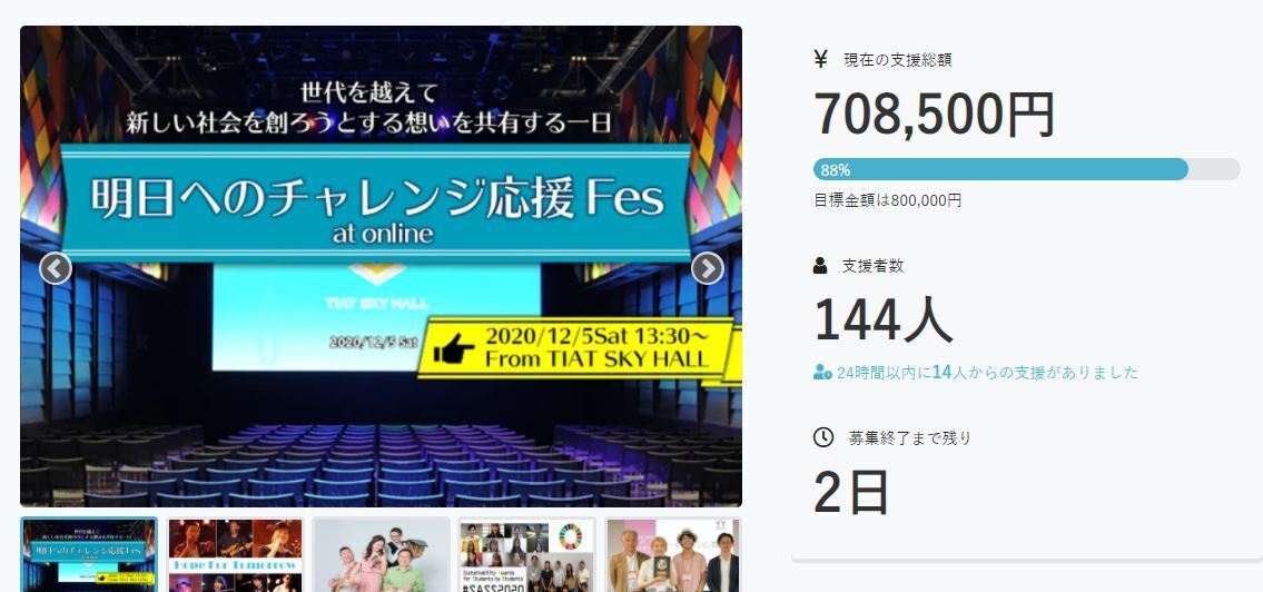 最後の週末となった昨晩から、多くの方にSNSでシェア頂いたりした結果、ご支援が増えてきました。
