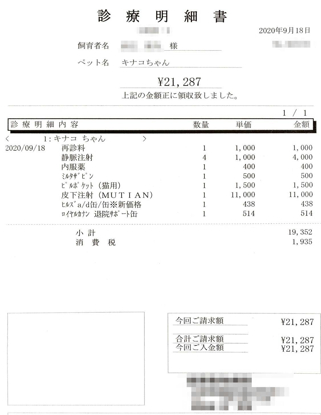 9月12日、かかりつけであった近くの動物病院に連れて行きました。まさか大きな病名を告げられるとは思ってもいませんでした。
