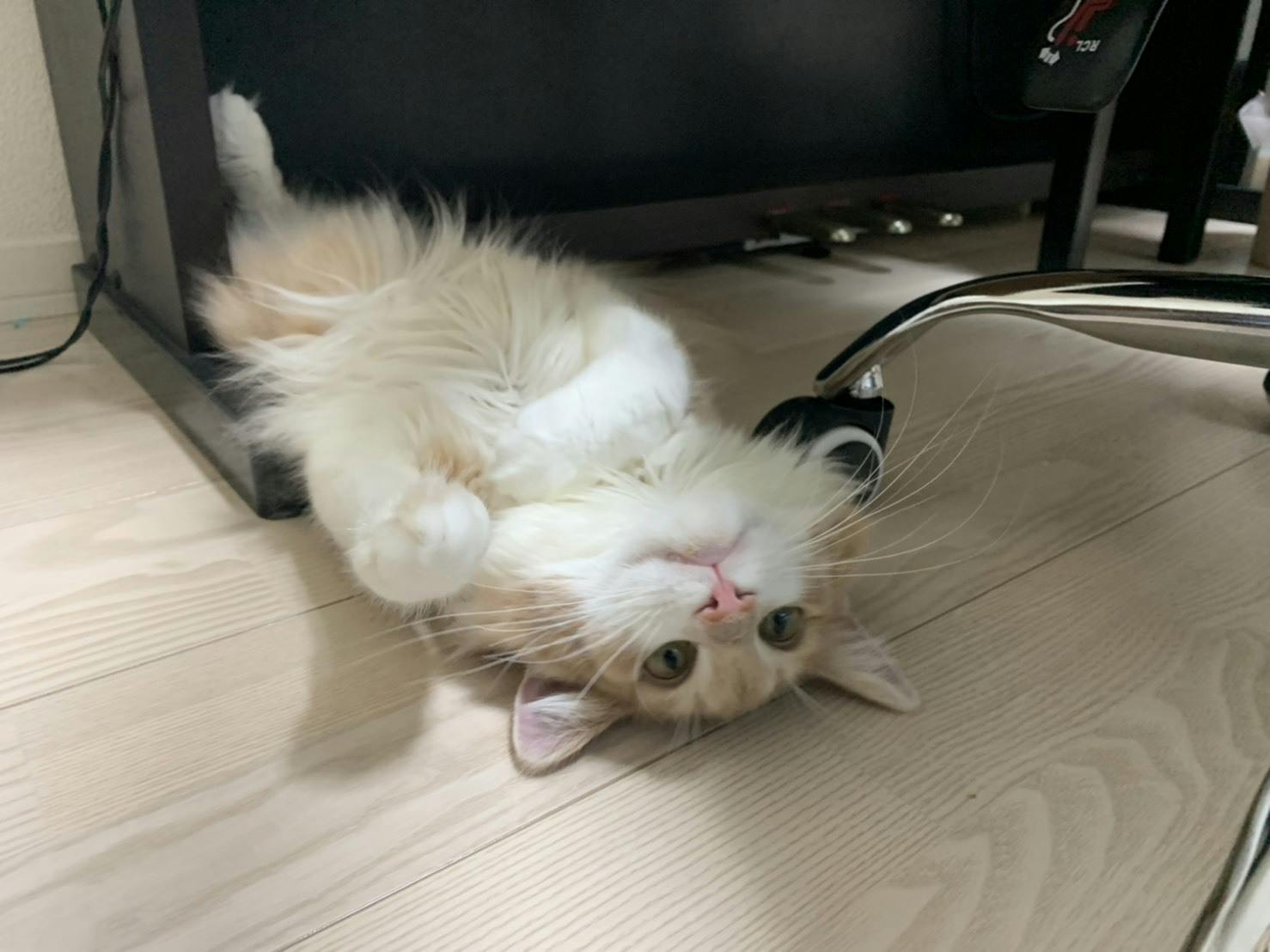 きなこはノルウェージャンフォレストキャットという品種で、クリームと白色のグラデーションが可愛い猫です。