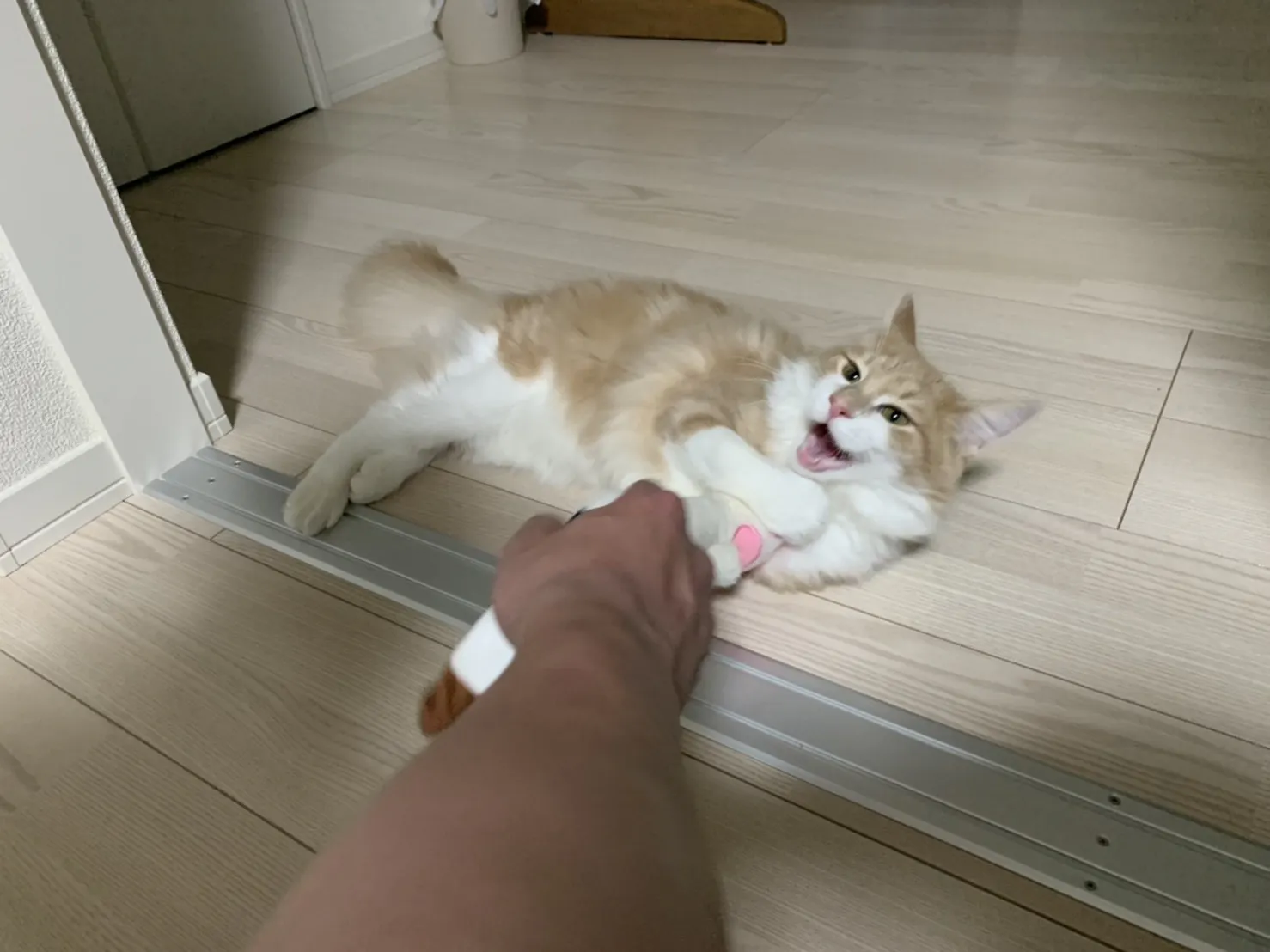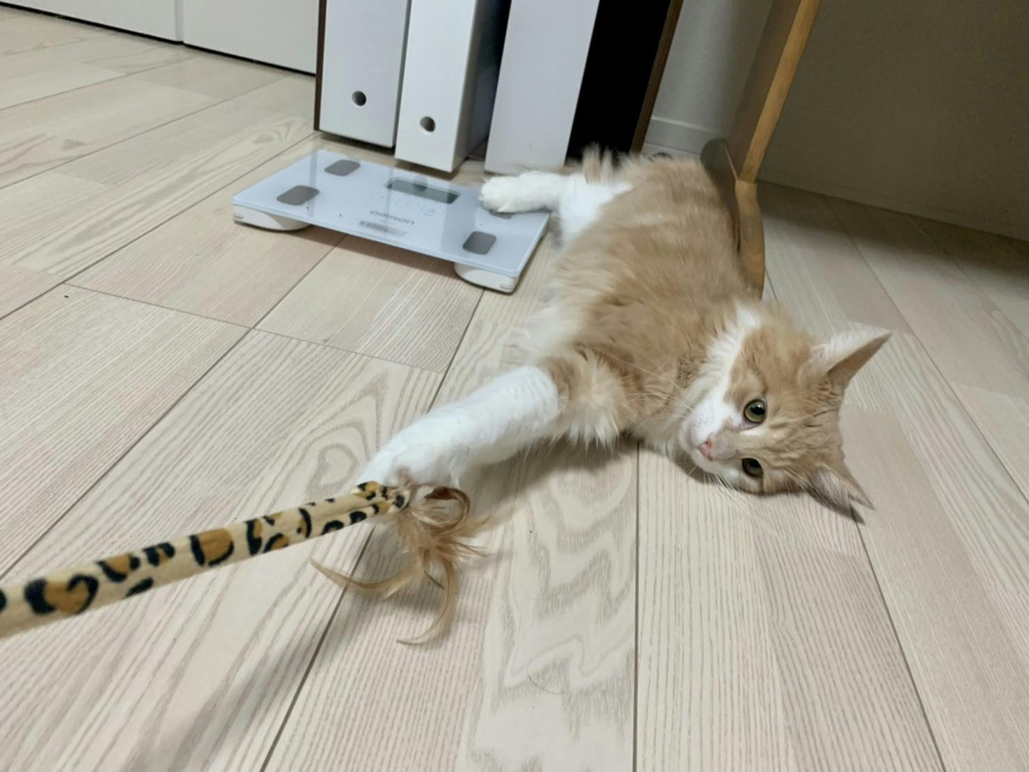 甘えん坊な性格で、常に私達が見える場所にいて、遊んでほしい時にはおもちゃを目の前に持ってきます。