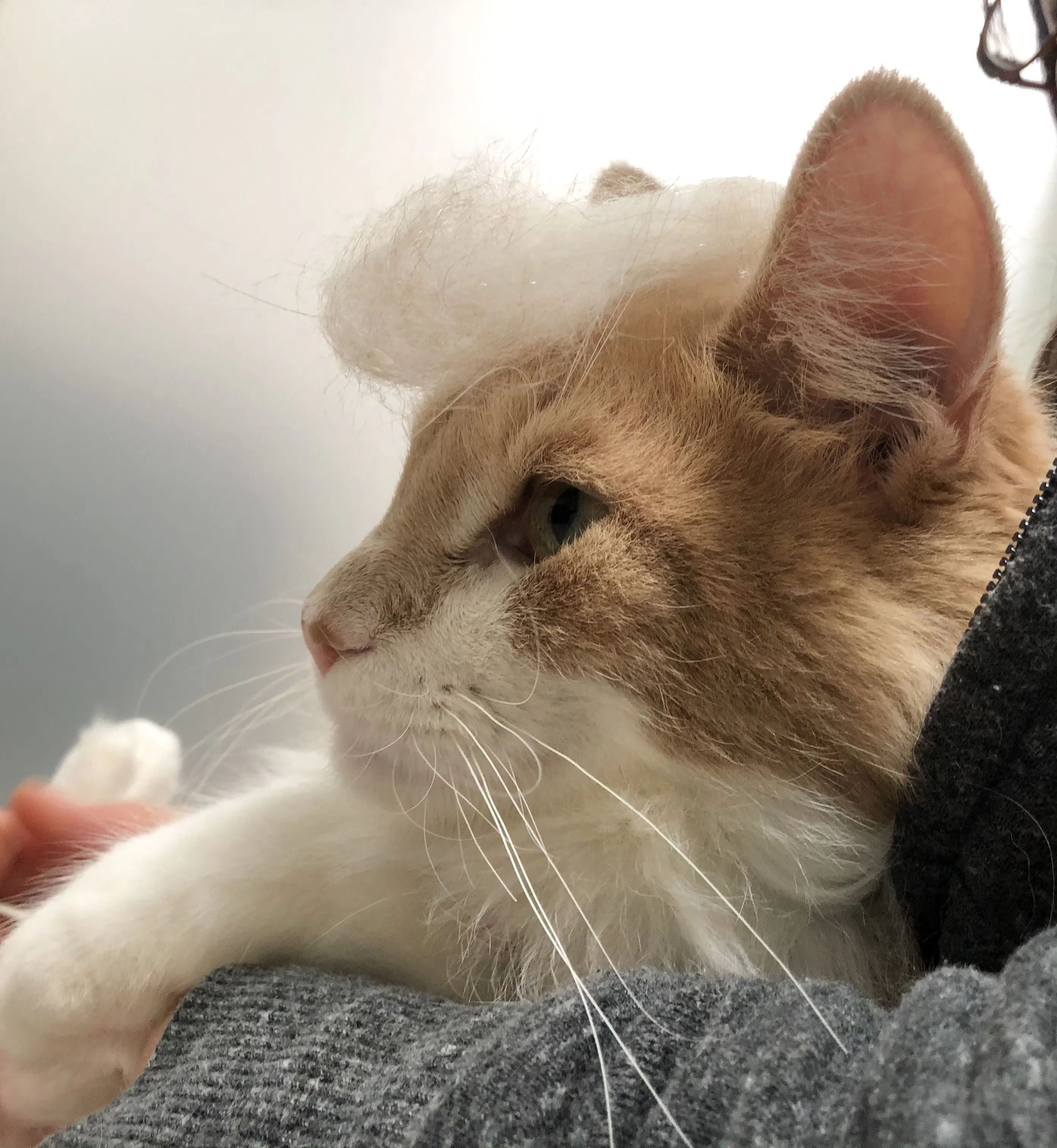 ファーミネーターで毛繕いして取れた毛でリーゼントを作りました。ツッパリです。