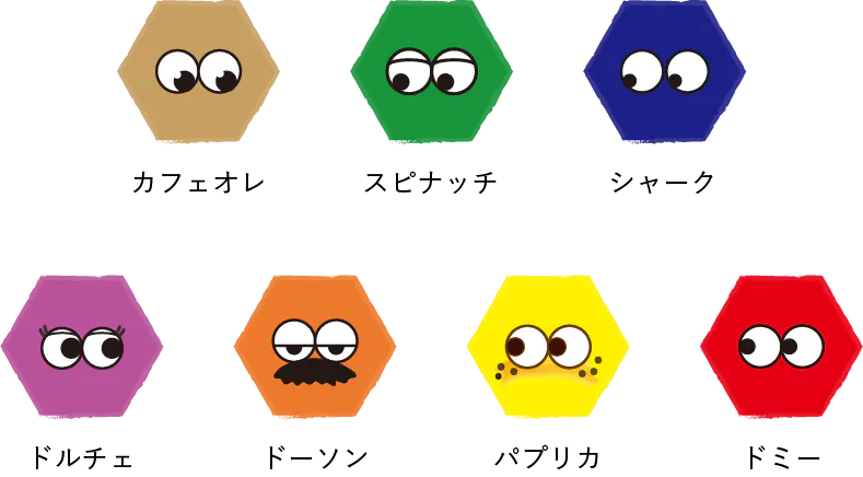 こどもや女性にも親しみやすく、ポップで可愛いキャラクターデザインにしました。