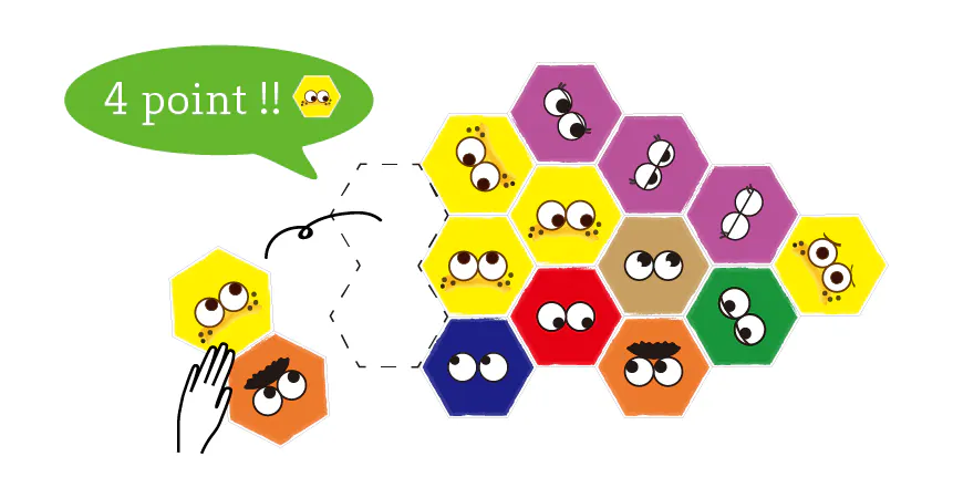 自分のタイルを同じ色のタイルにくっつけてポイントゲット!