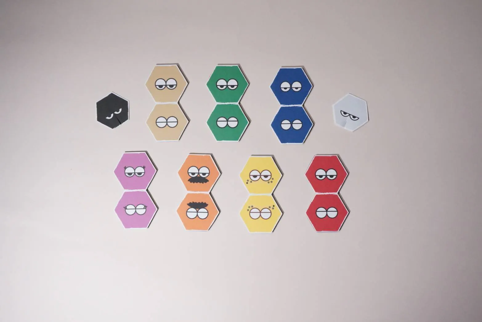 7種類のキャラクター(ドミーたち)は決まった組み合わせなので、自分の手札から相手の手札のタイルを予想したり!戦略的にゲームを進めていきましょう。