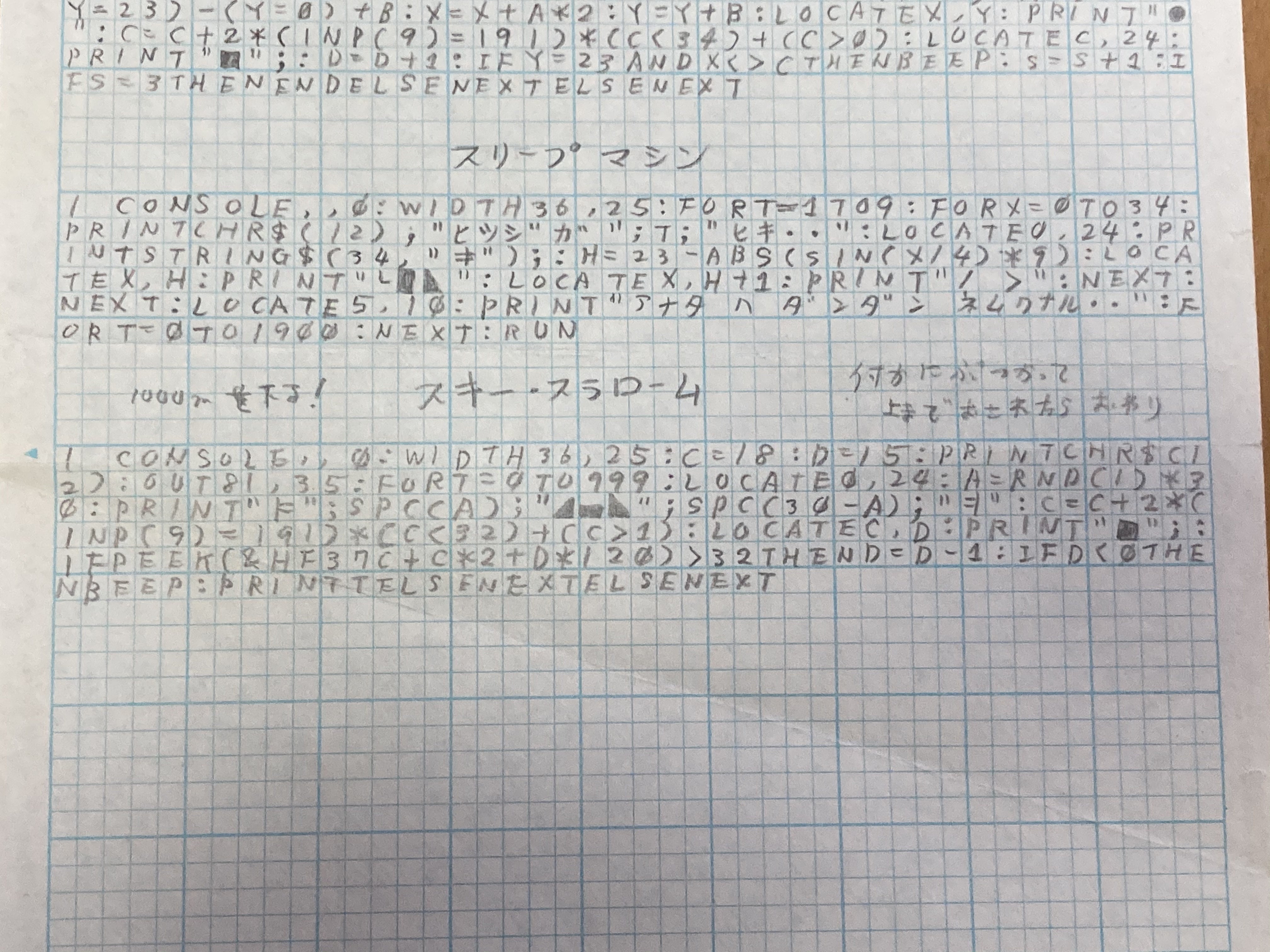 このプログラムを作成したのは約38年前(当時高校生)のため、残っているプログラムも方眼紙に書いたメモしか残っておらず、再度入力しては動作確認し試作を進めています。
