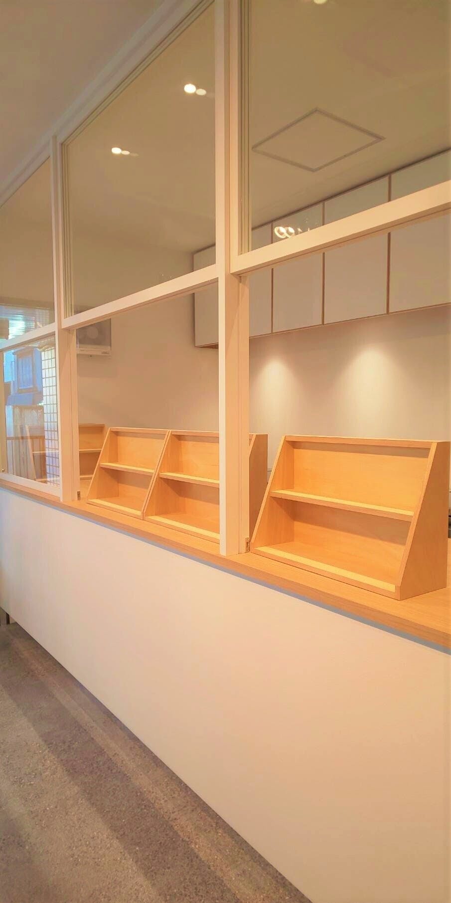 また、店内入り口は常にオープンにし、商品陳列カウンターには状況に応じて開け閉めができる窓を付け、コロナ禍に対応した造りになっています。