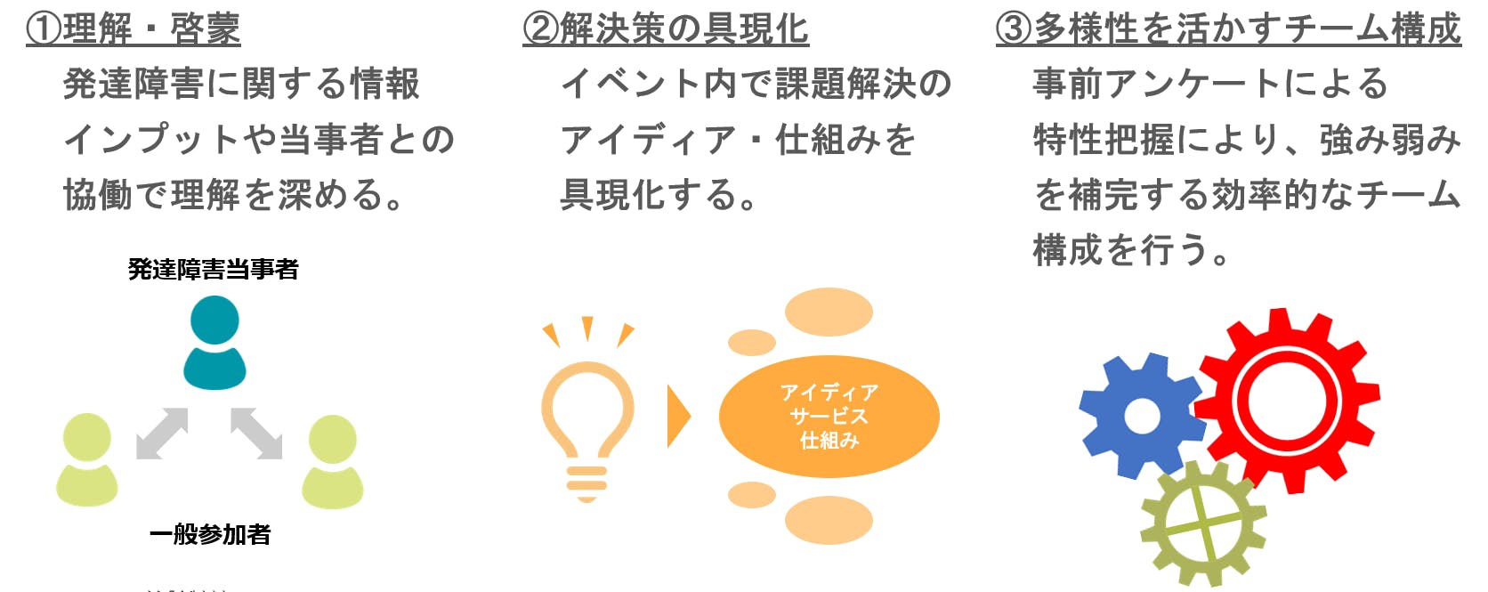 誰もが過ごしやすい社会を実現するために、一般領域でも活用できる発達障害からの視点を含んだ仕組みが必要だと思います!。ぜひハッタツソンから生まれるプロジェクトにご期待ください!