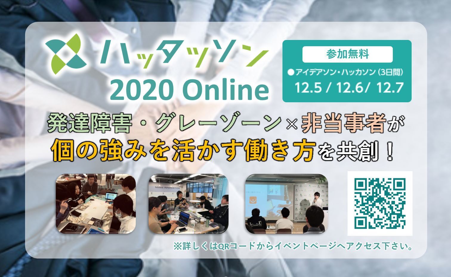 発達障害のある人とそうでない人とで「個の強みを活かす働き方」をテーマに誰もが働きやすい社会を実現するための仕組みやサービスを考えつくる3日間のプログラムの最終プレゼンを開催しました!リアルタイムでご視聴できなかった方はぜひこちらからご視聴ください!https://youtu.be/lHm3FwWWrLg又、4人のゲスト審査員の採点とクラウドファンディングを通じて投票権を得た方の投票により、カードゲームを用いた「自己理解~他者理解~相互理解促進ツール」を発案したチーム「ノノトミー」が最優秀賞に選ばれました。今回は開催に辺り日本マイクロソフト株式会社さまトラストリング株式会社さまをはじめとする様々な企業・団体さまにご協賛頂きました。他にも運営や企画など様々な場面で山口 聖さんや田中 早由里さんをはじめとする様々な方にご協力頂きました。実施していたクラウドファンティングでは38人の方にご支援をいただくことができました。その他にもFacebookやTwitterなどで多くの方にシェアなど様々な形で応援していただきました。本当にありがとうございます。ハッタツソンは今後も発達障害当事者と非当事者による共創を通じて「誰もが過ごしやすい社会をつくる」ソリューションを生み出す場として継続していきたいと思っていますので引き続き応援のほどよろしくお願いいたします。