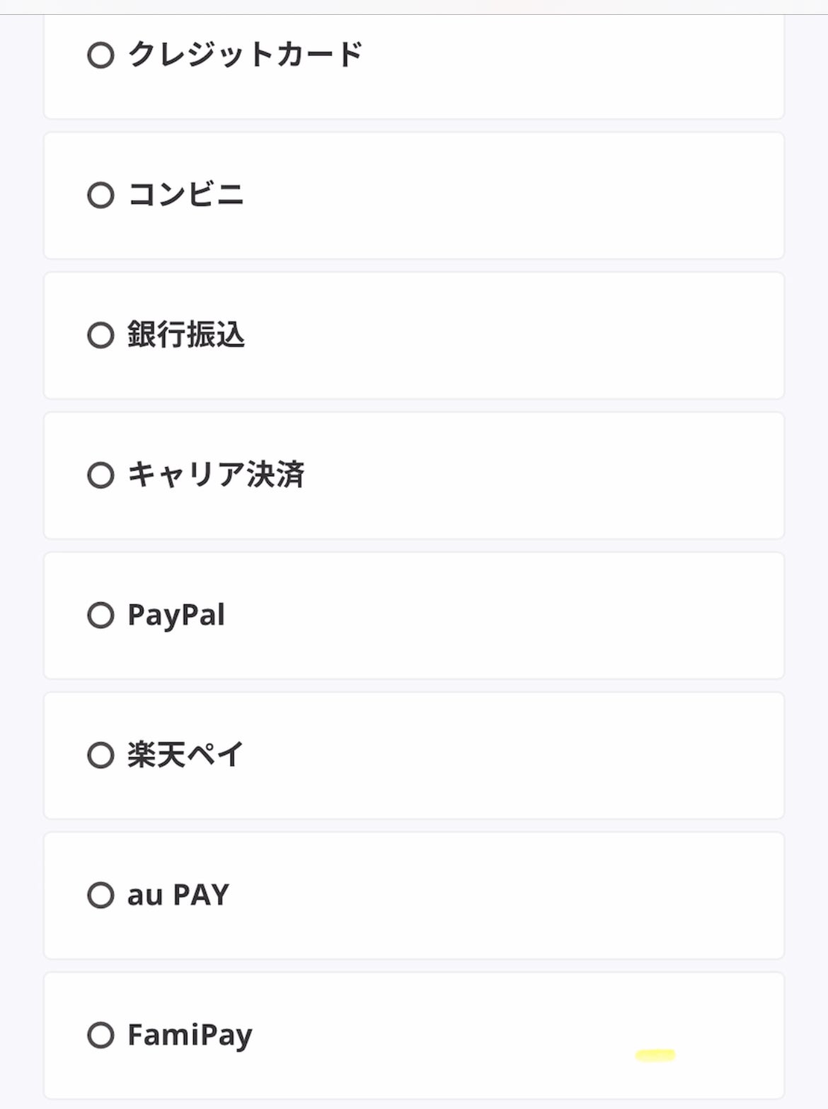 登録できたら、支払い方法を選択する。