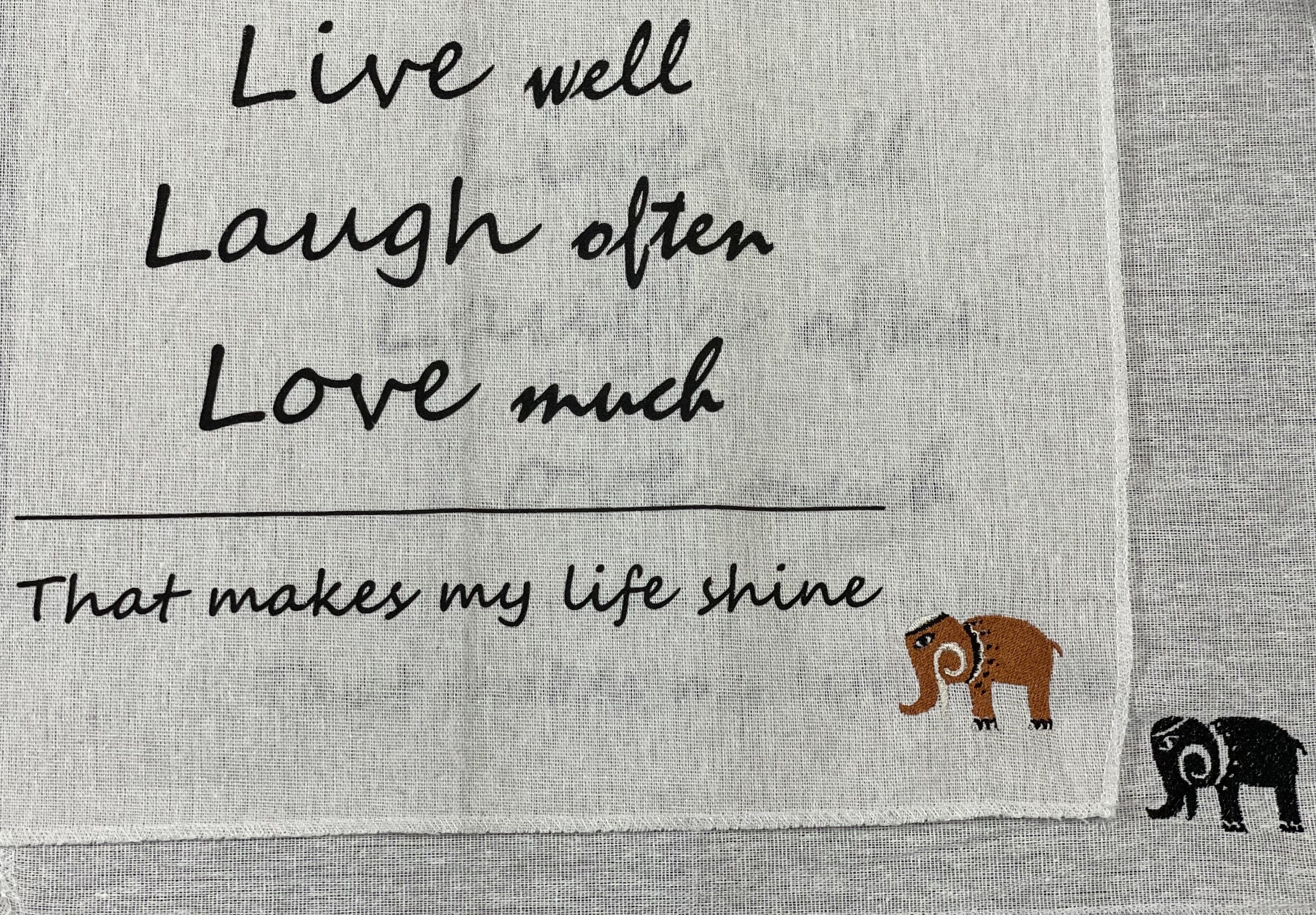 食事の際に使用するランチョンマットに、このアイコンゾウさんを刺繍してもらうオーダーをしまして、生地との相性も抜群!とっても素敵に仕上がりました!!