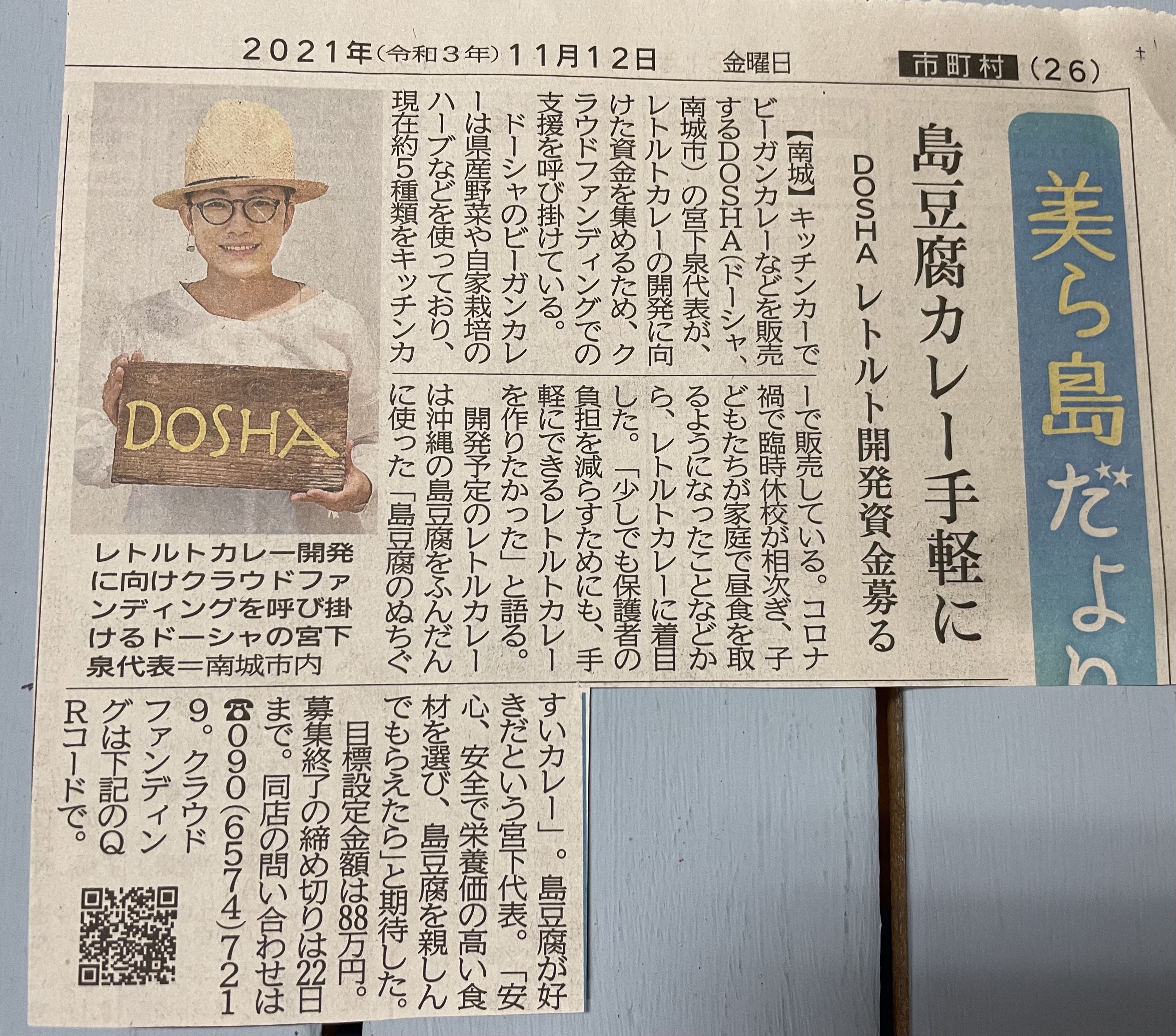記者の金城さんとは、南城市のトライアルサウンディングの仲間と取材受けをしたことがきっかけで、ご縁をいただきました。