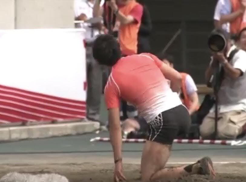 5本目の大ジャンプは数センチのファールで幻と消えました。その距離は、自己ベスト16m40cmを大きく超え、その年に開催されたモスクワ世界陸上の標準記録を突破する大ジャンプでした。