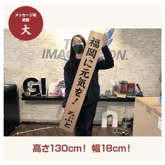 2020/11/20 12:15クラウドファンディングにてご支援いただいた方への返礼品(※)のひとつとしてメッセージ看板をご用意しております。※ご支援いただいた内容によって返礼品は異なります。 今回ご紹介させていただくメッセージ看板は、高さ130cm×幅18cmの大サイズの看板です。このようなメッセージ看板を製作中です(^^)ありがたいことに、日頃から大変お世話になっている企業様からもランドマークプロジェクトにご支援いただいております。本当にありがとうございます! もっと見る