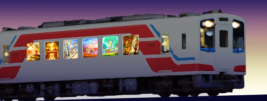 車窓から美しい三陸の海が観られる一方でトンネルが多いと言われる三陸鉄道の特徴を逆手に取り、トンネルに入ると光る絵本の美しさが際立つ仕掛けを考えています。会期中、上下計12本の車両を貸し切り、列車の窓に作品を展示、各駅でもモニュメントの設置や記念プログラムを考えています。