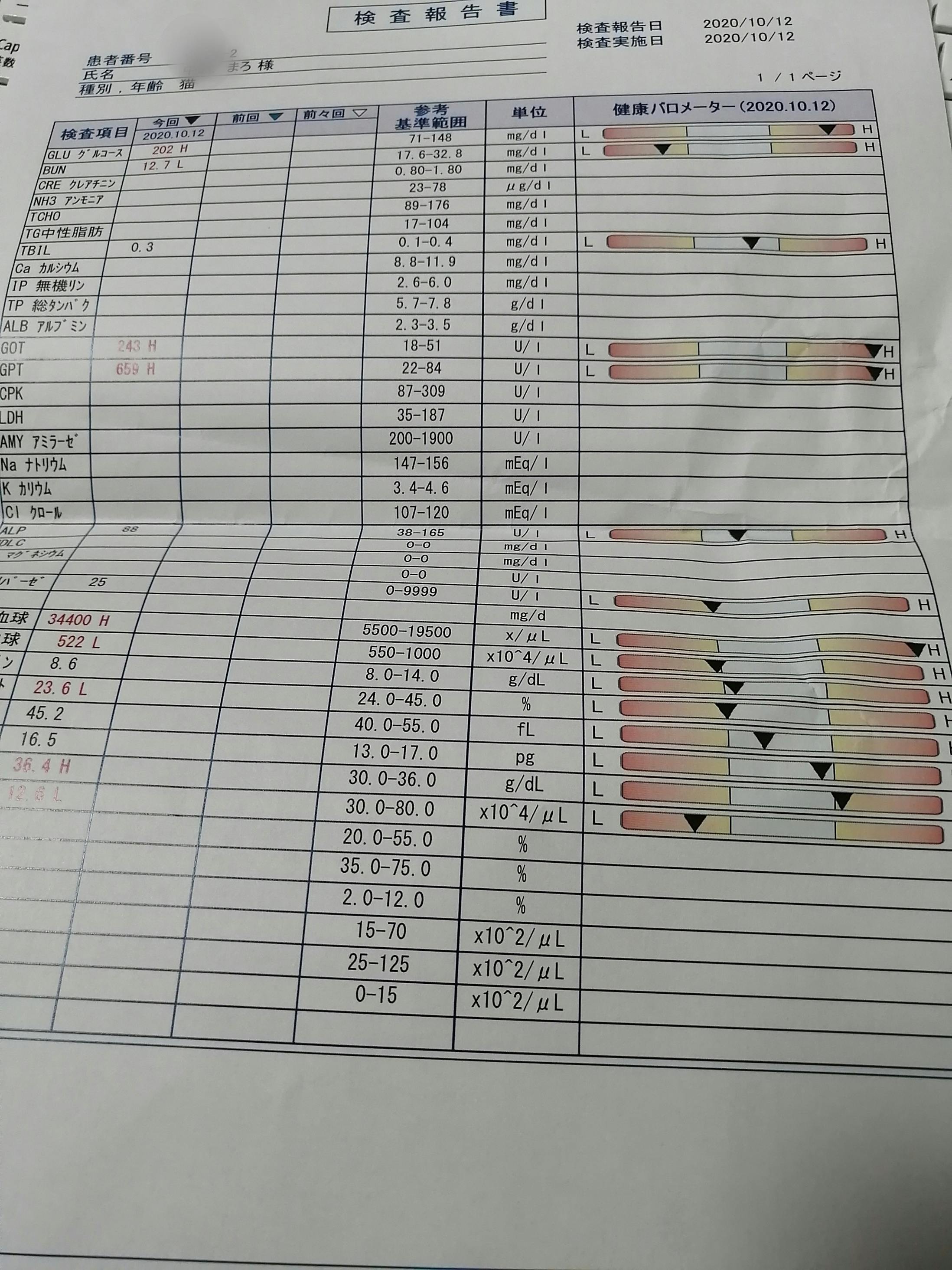 しばらくは、ご飯も水も受付けてくれず、本当に心配でいっぱいでしたが、10月23日現在、ご飯とお水を少しずつ口にしてくれるようになりました。