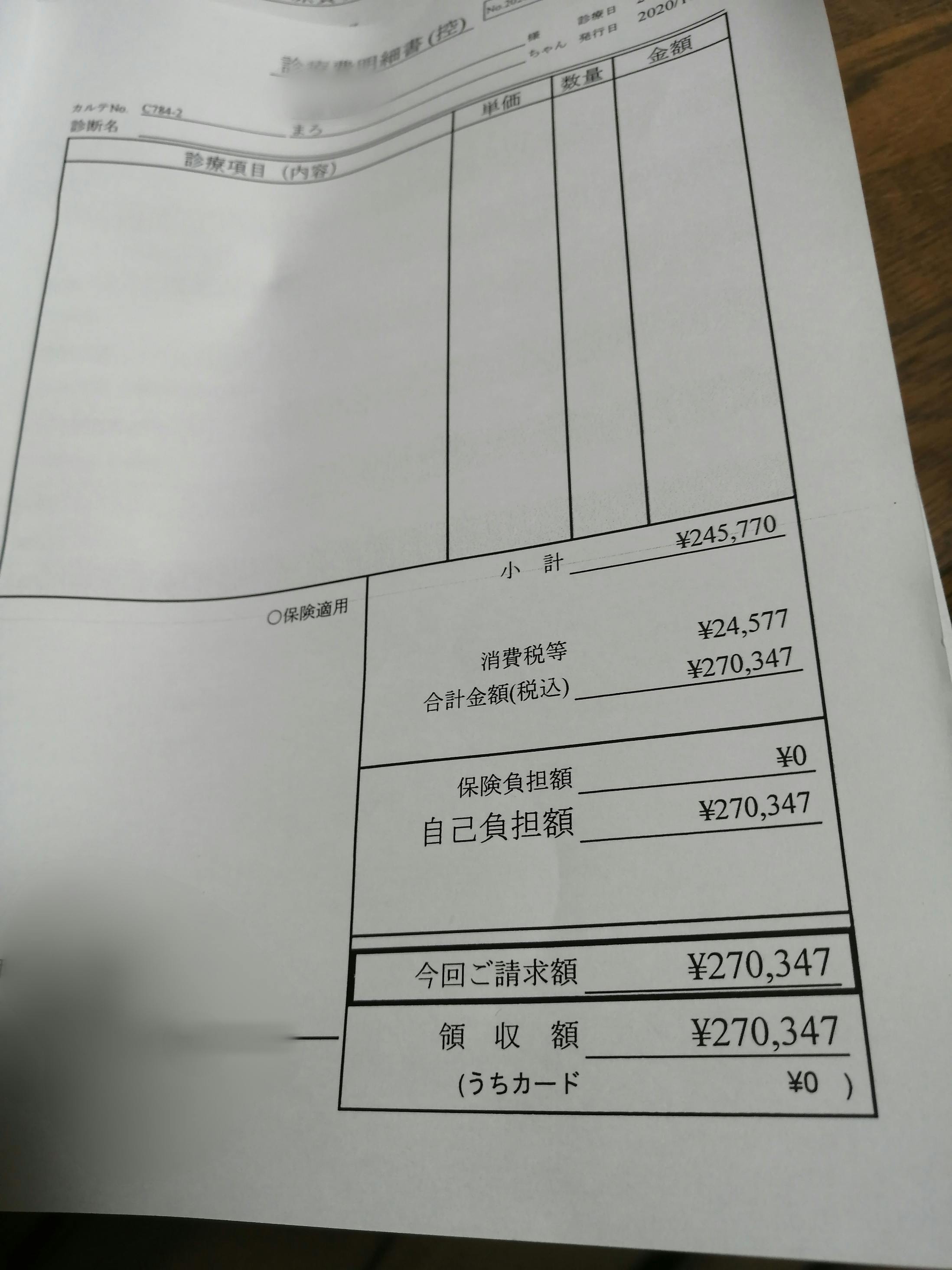 なんとか助けてあげたいのですが、手術費用が高額でおそらくですが50万は見ていてくださいとのことでした。