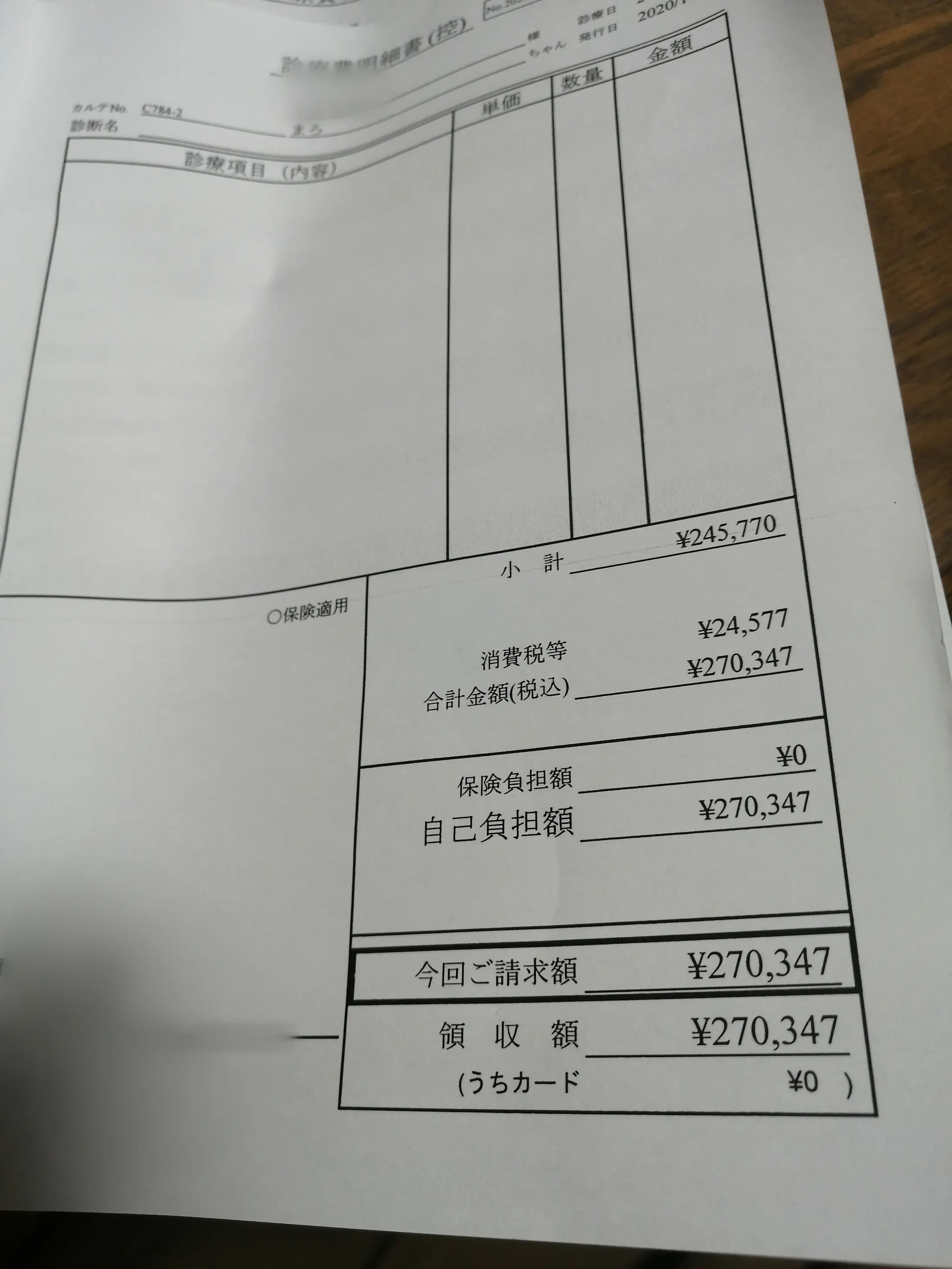 手術を行う前の段階では、おそらくこのくらいかかるであろうとの診断でまだはっきりした金額がわからず、とにかくなんとかしなければとの思いで50万という金額を申請させていただきました。