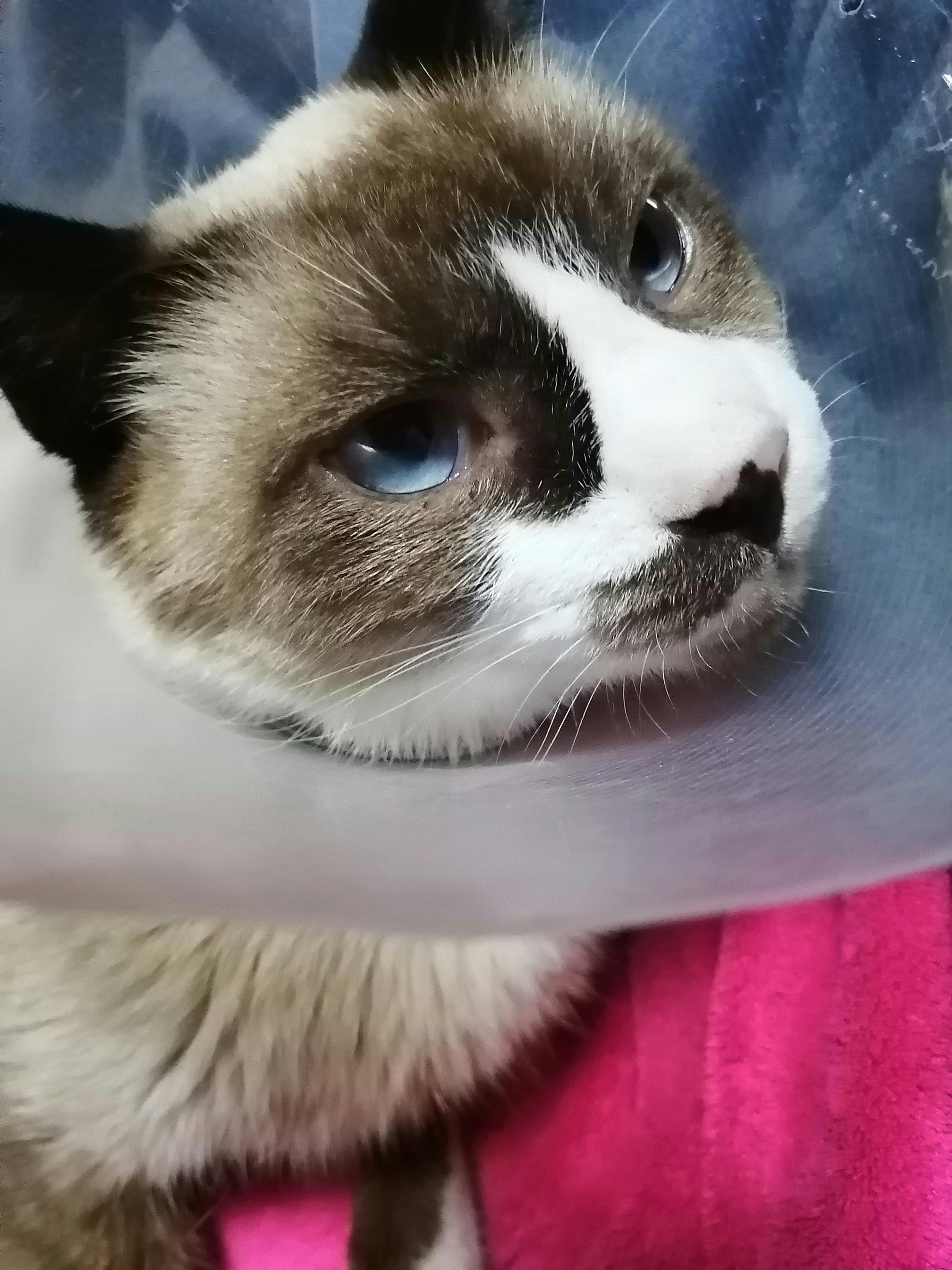 舐めないように病院からエリザベスカラーをお借りしました。つけたくないようでとても嫌がります。