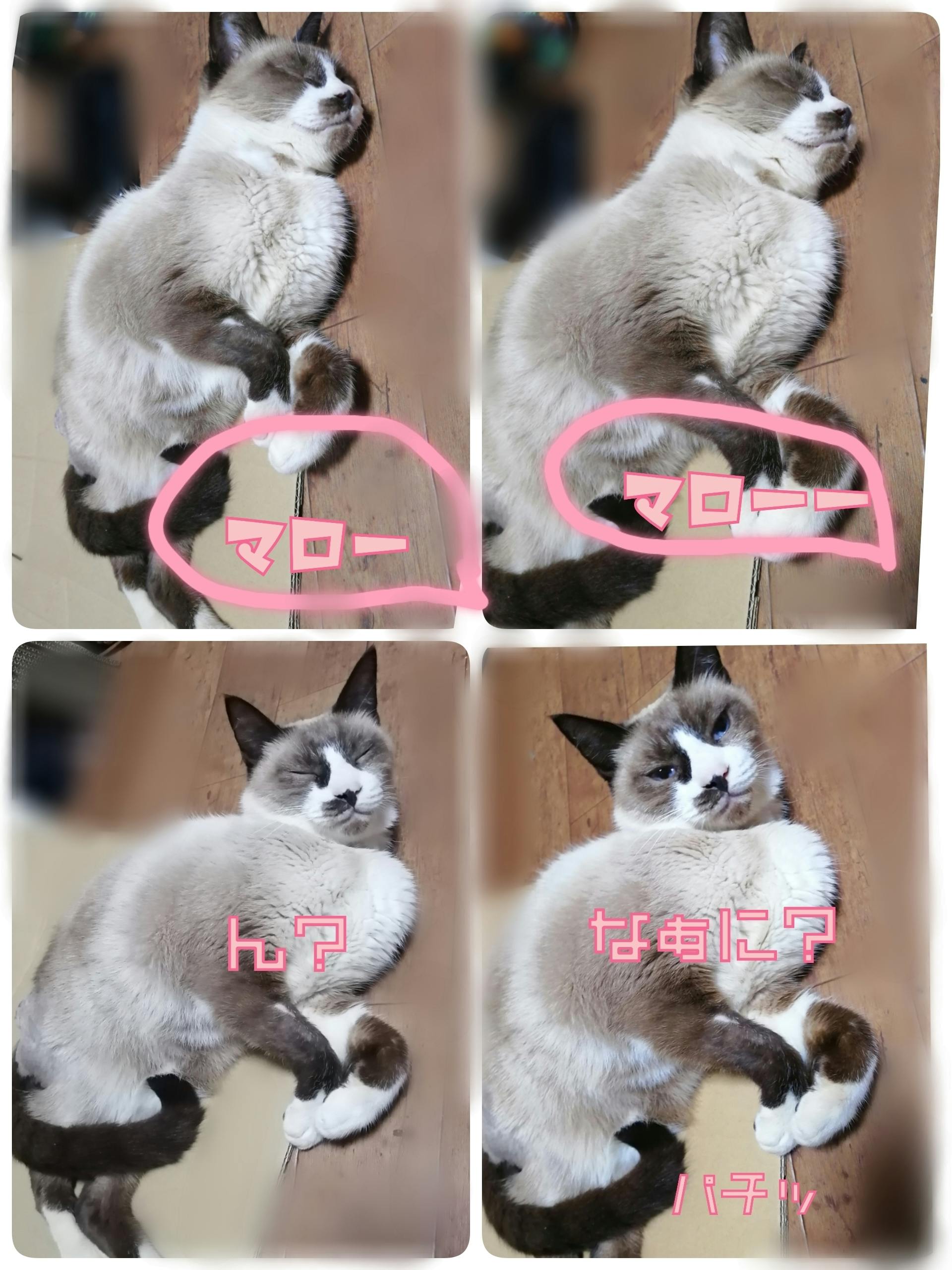 探すと、引っ越しのためのダンボールの上にマロが横たわっています‥‥