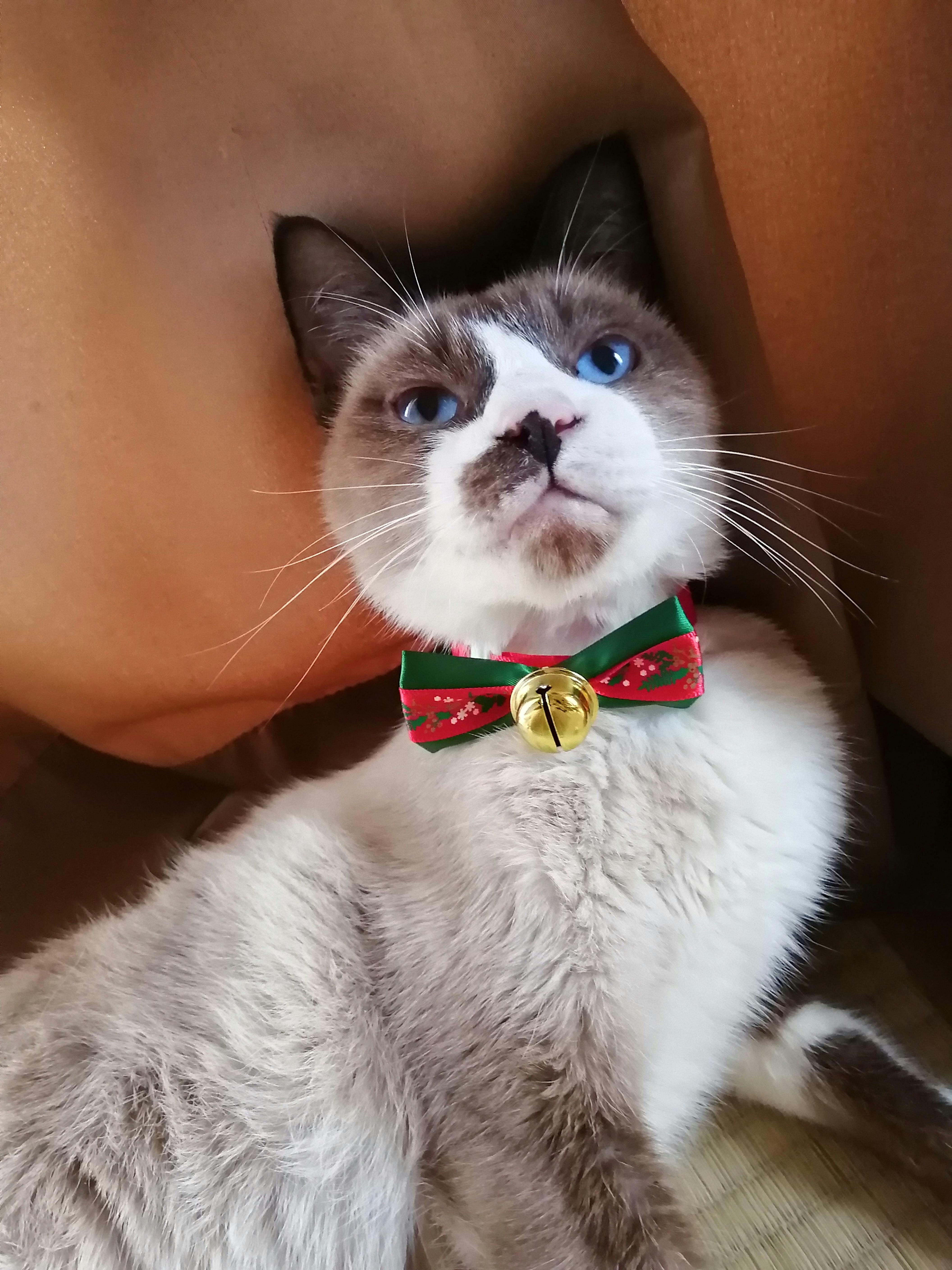 怪我をしているので、負担にならないよう、首元だけでもクリスマス仕様にしてみました。