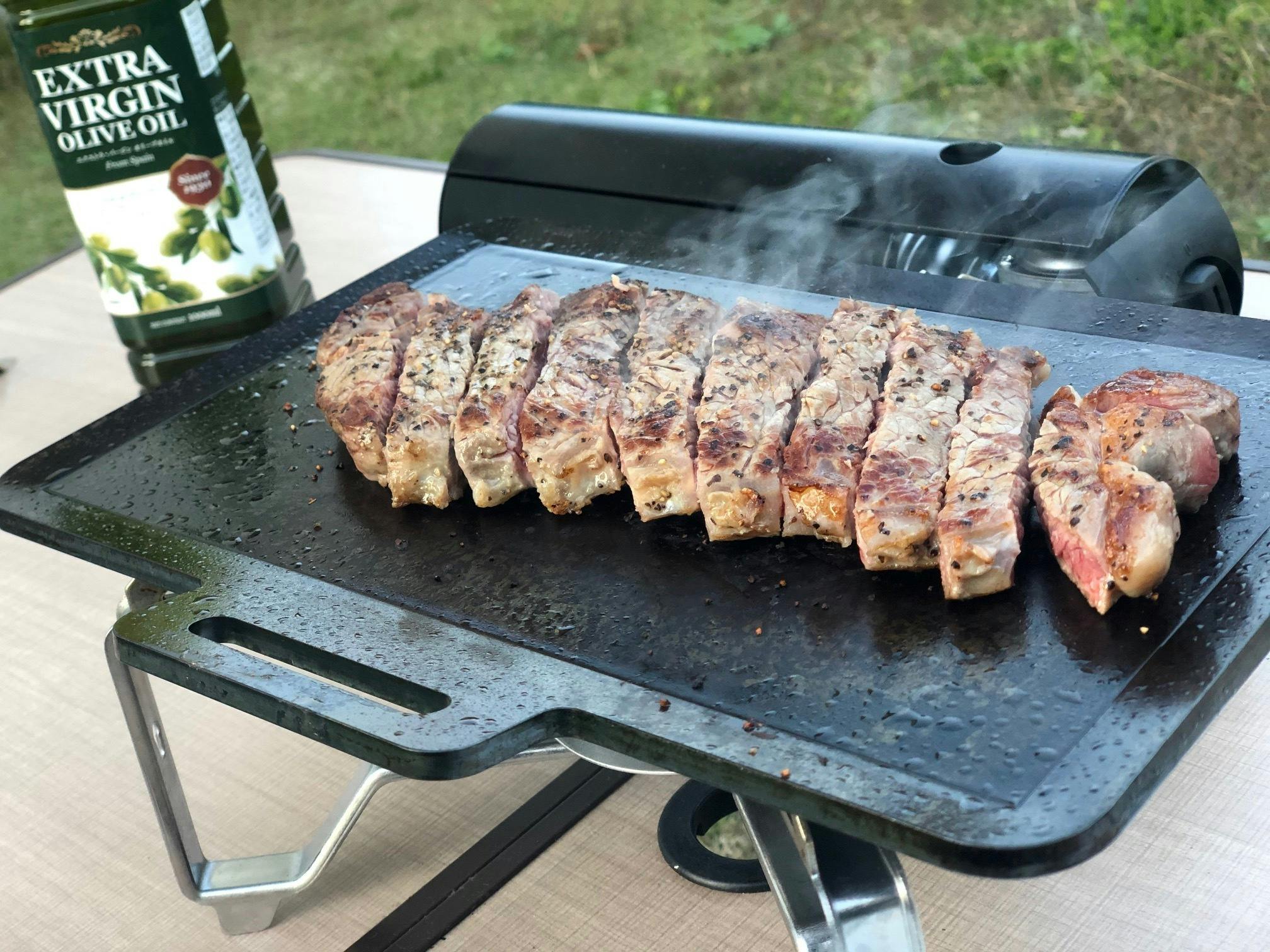 十分に加熱した鉄板の上で焼くことができます!