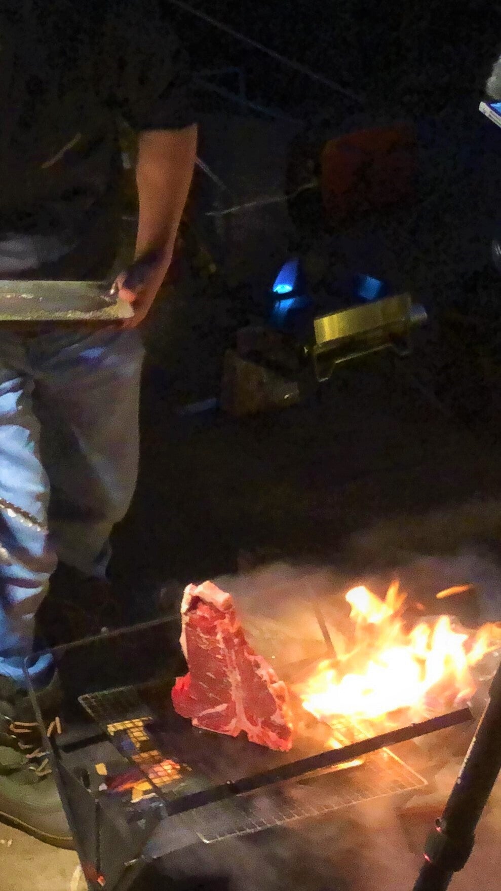 Tボーンステーキ^^表面を焼く前に骨を温めるそうです。こういう工程あまりお目にかかったことがありませんでした↓