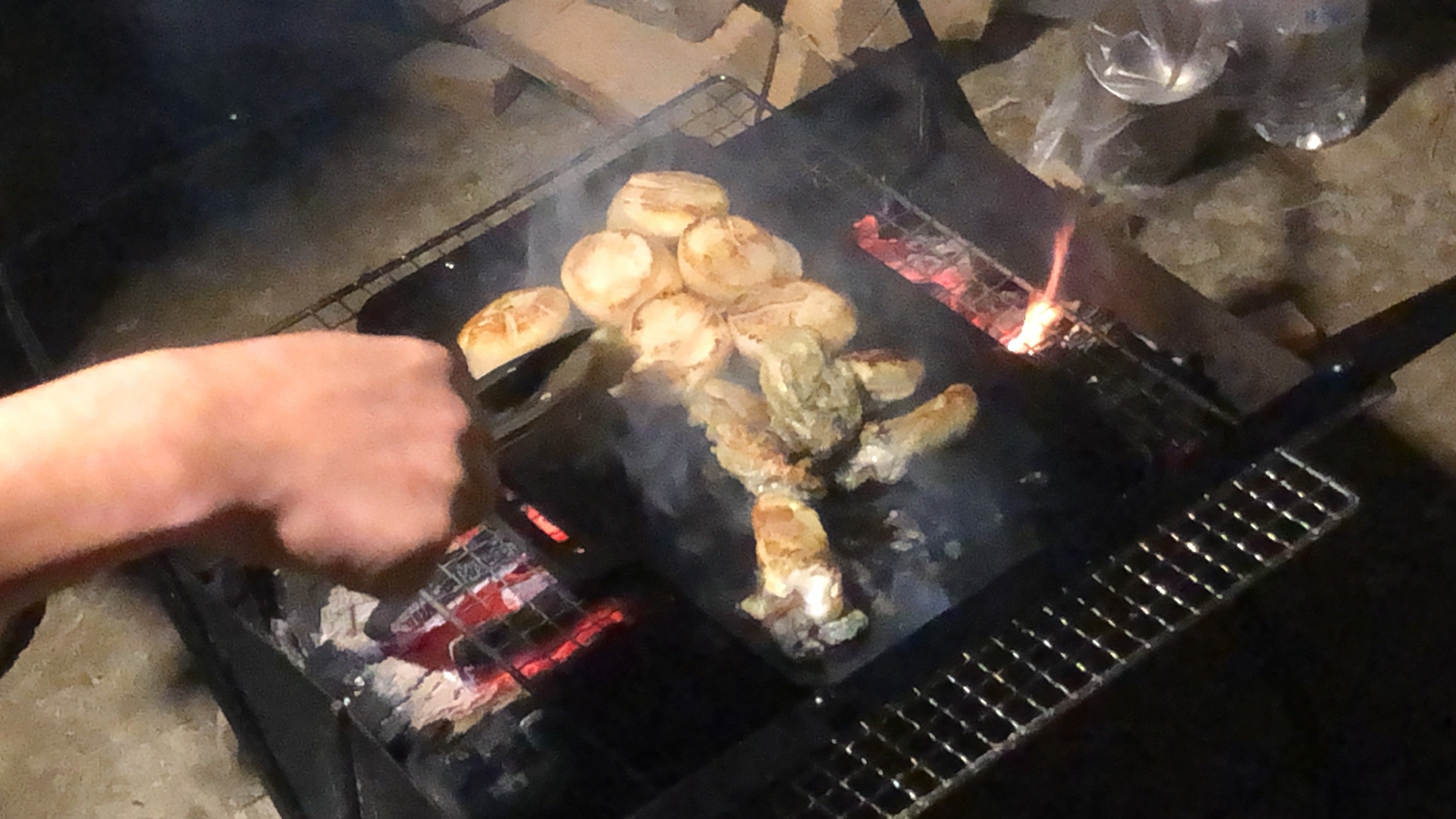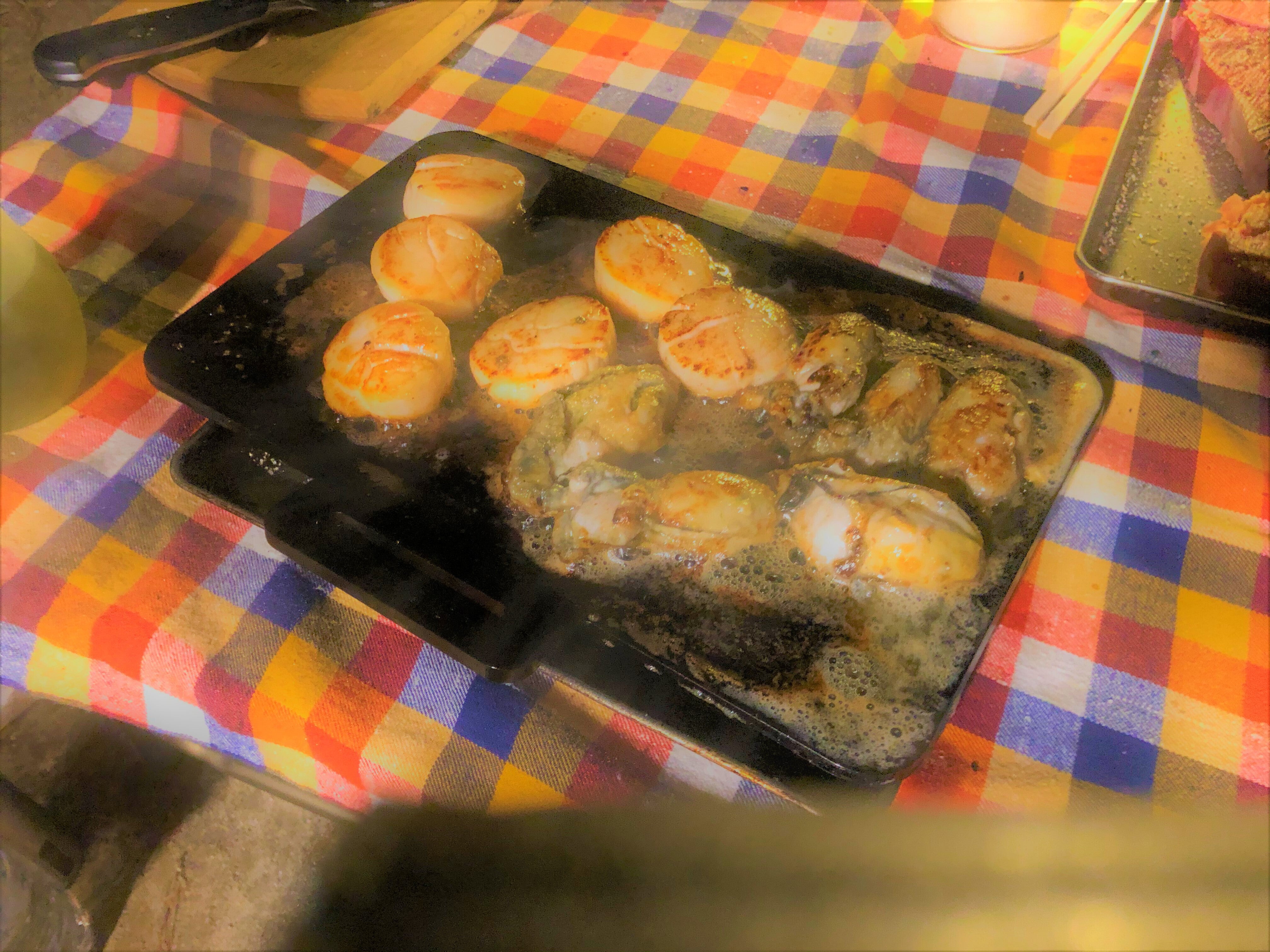 もう一品ということでホタテとカキの鉄板焼きをつくってくれました↓