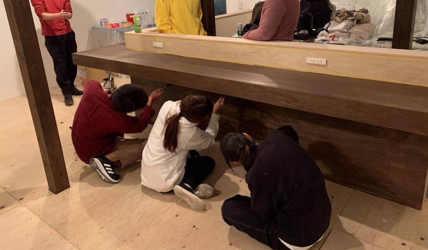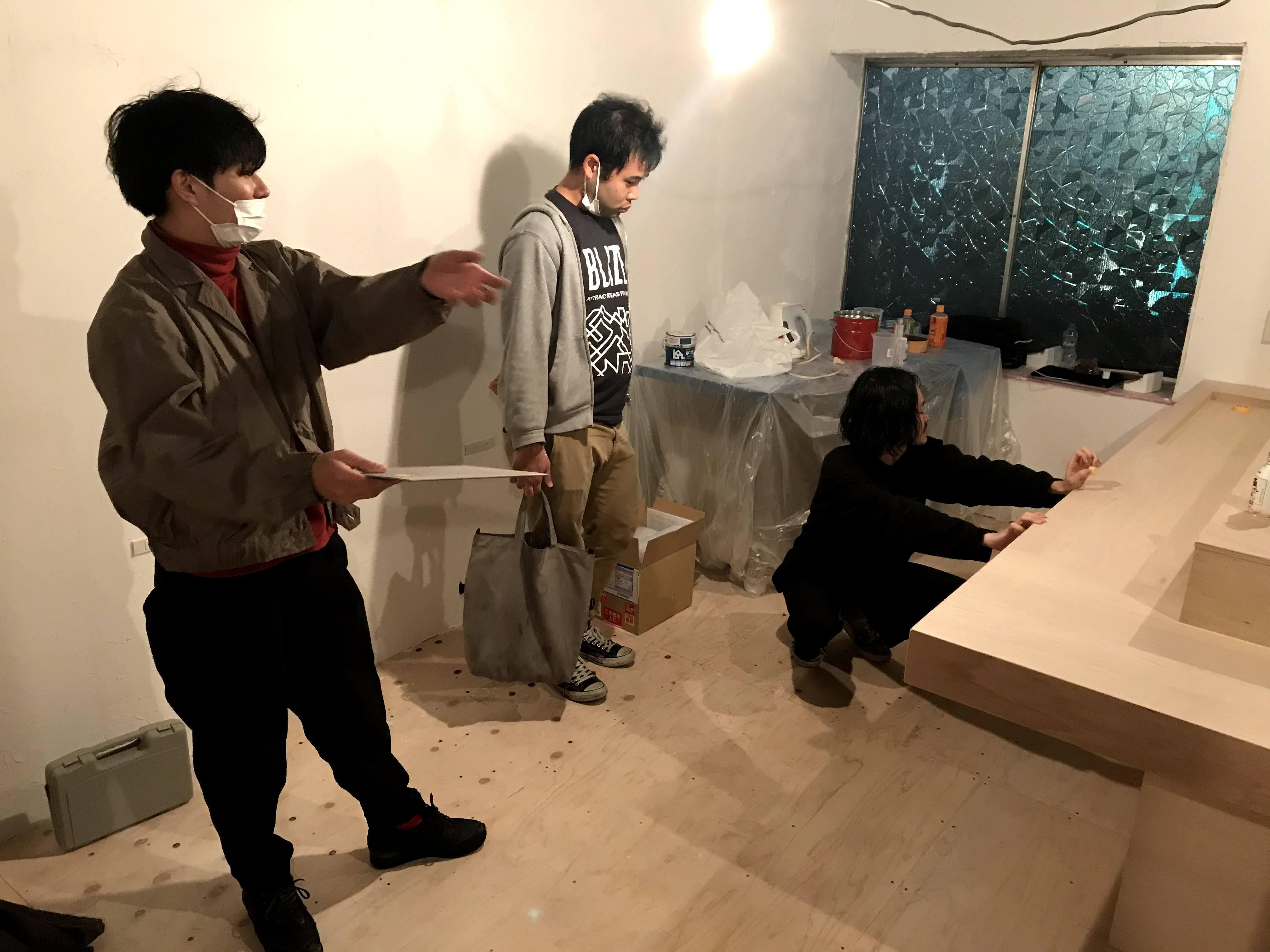 仕様も決まり、カウンターを3人がかりで仕上げていきます!