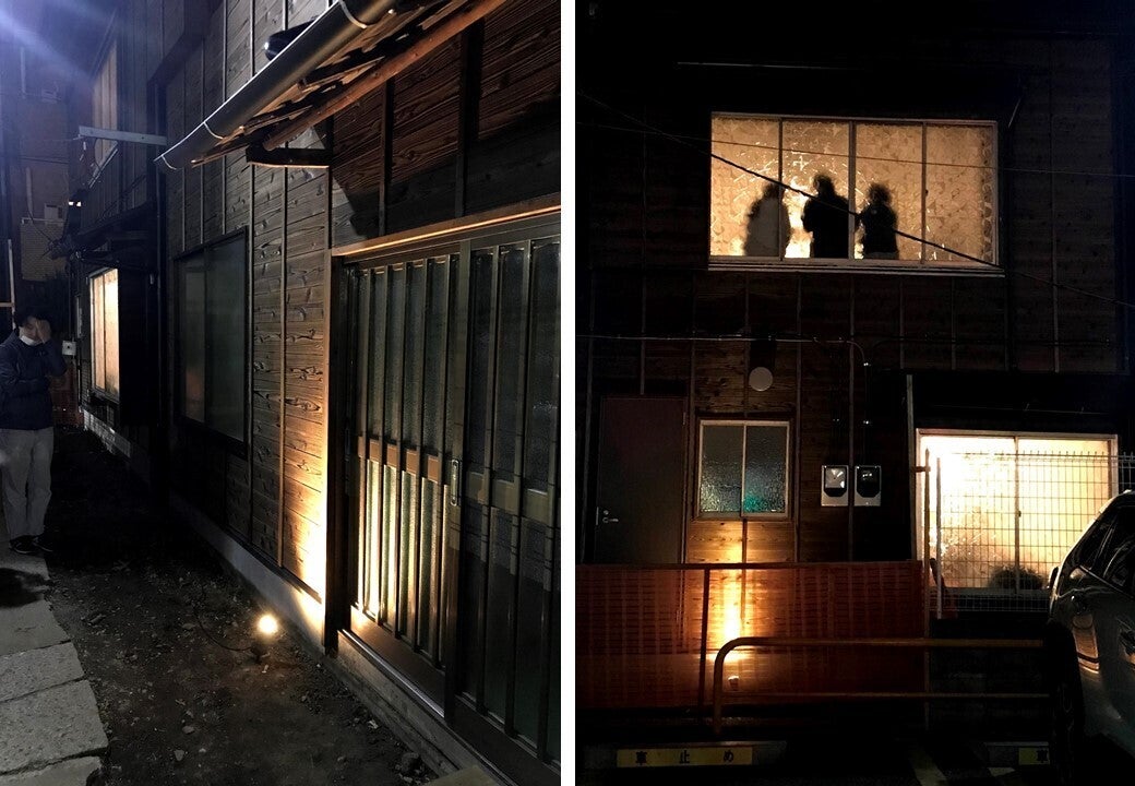 この日は、今回のクラウドファンディングでご支援頂いた資金で設置する、外構照明の確認も行いました。どの位置に何個設置するか、実際に照明を繋いでテストをしました。