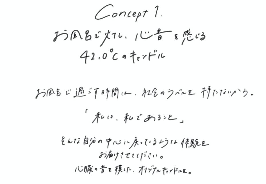 - コンセプト1「お風呂で灯し、心音を感じる 42.0℃のキャンドル」