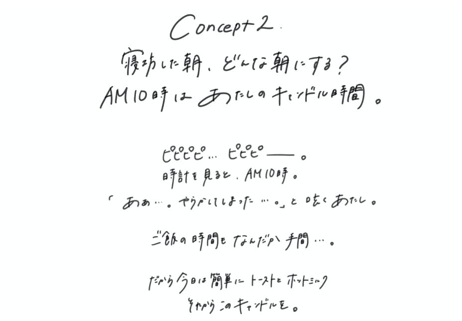 - コンセプト2「寝坊した朝、どんな朝にする?AM10時はあたしのキャンドル時間」