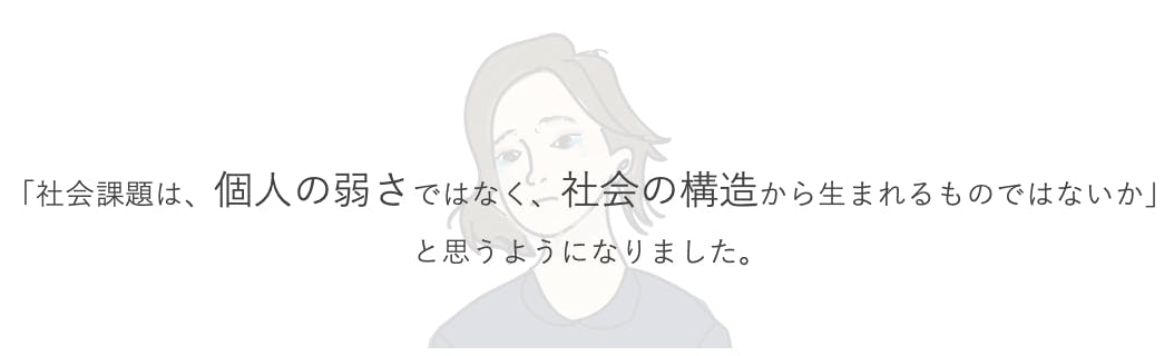 迷った末に、たどり着いた自分の軸は、「既存のセーフティネットから溢れてしまう方へ、明日がご機嫌に過ごせる世界を造る」ということ。
