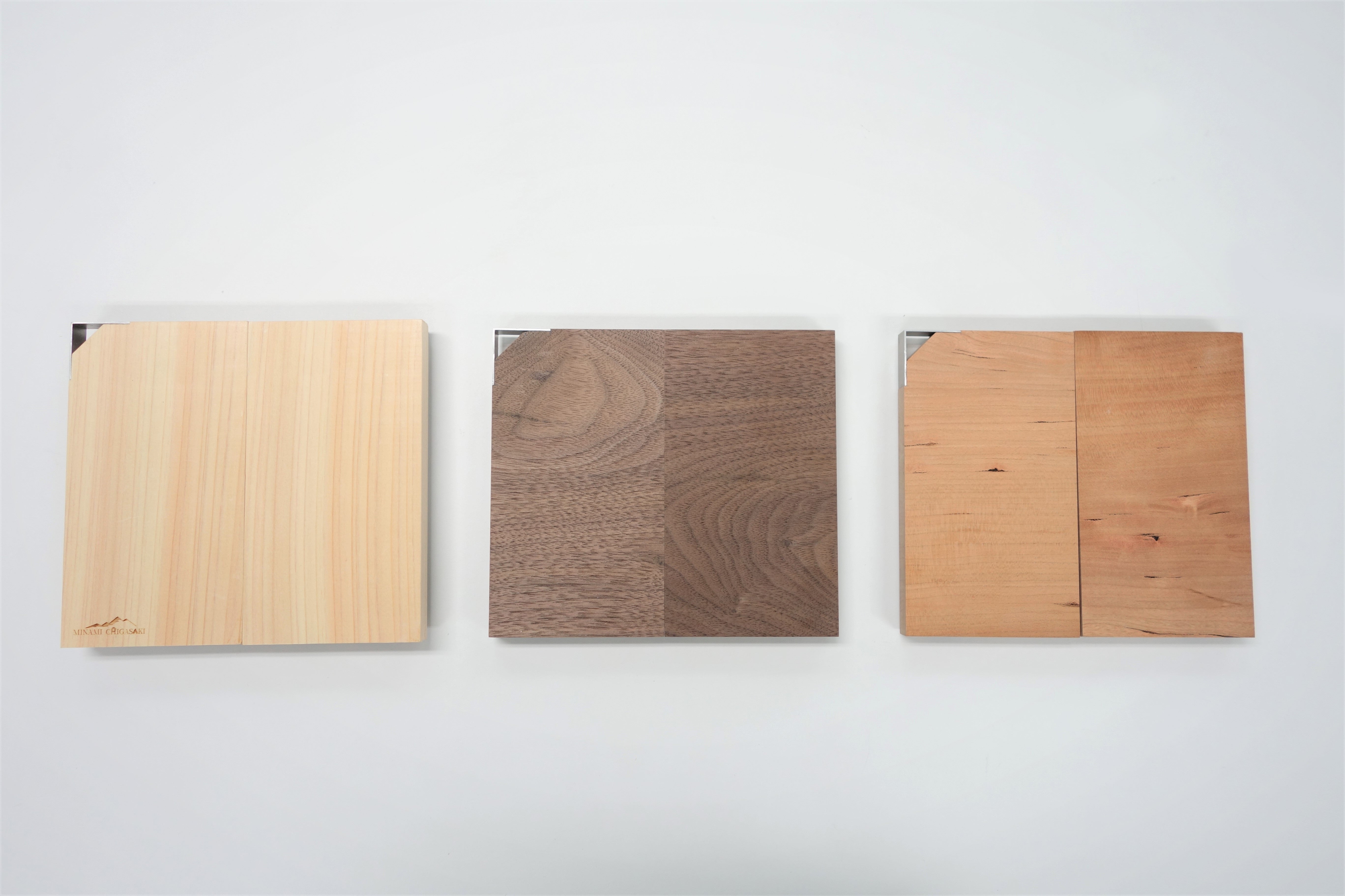 すべすべとした肌触りです。 チェリー材を使用した商品の見た目はとてもラグジュアリーです。 また、堅すぎず柔らかすぎず加工しやすいという特徴があります。 チェリー材最大の特徴は、使っていくうちに色が変わっていくことです。※販売時期は未定です