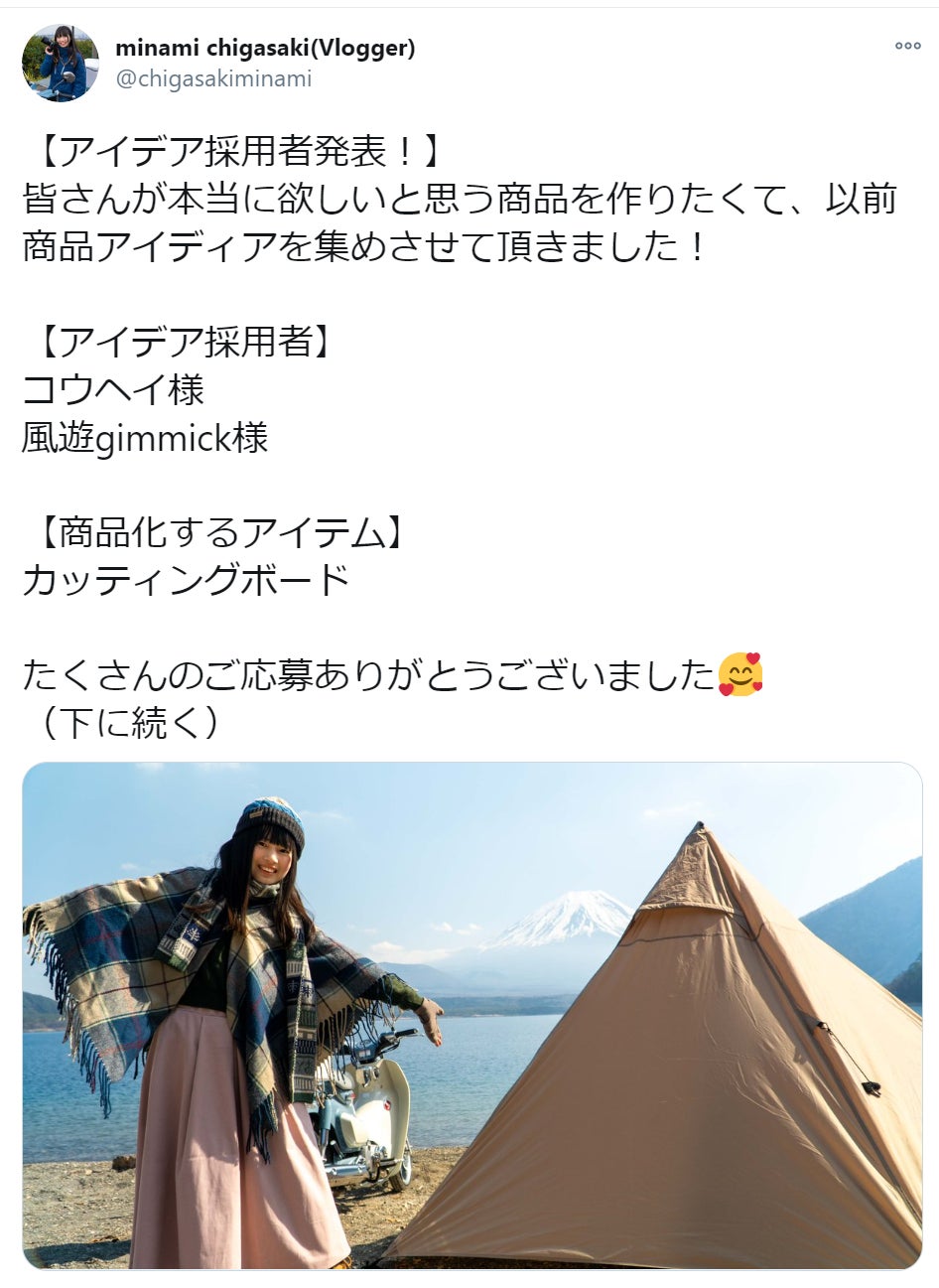 キャンプ好きが本当に欲しいと考える商品制作をする為に、ゆるキャンで有名なYouTuberの茅ヶ崎みなみさんと協力をさせて頂きました。