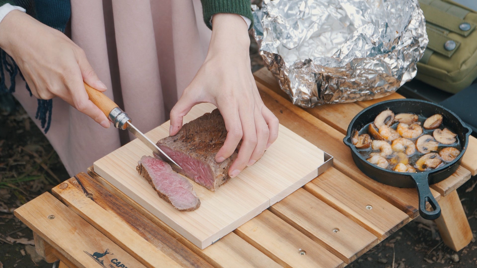 ポイント③ 強力マグネット付きで開いた状態で維持できます。ちょっとしたお皿替わりとしても使えます。おつまみやお肉をよそって、おしゃれにキャンプ飯をより美味しくします。