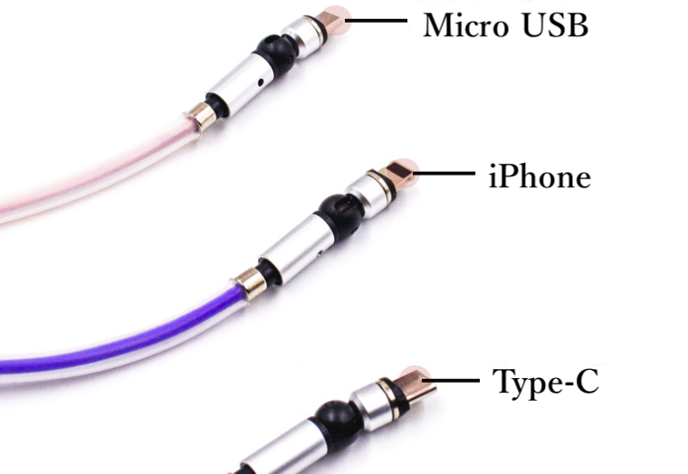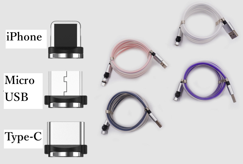 【三つポート対応】一本三役なマグネット式充電ケーブル。Micro USB、Type-C、iproductも対応できますので、ほとんどのスマホ、タブレットに適合します。