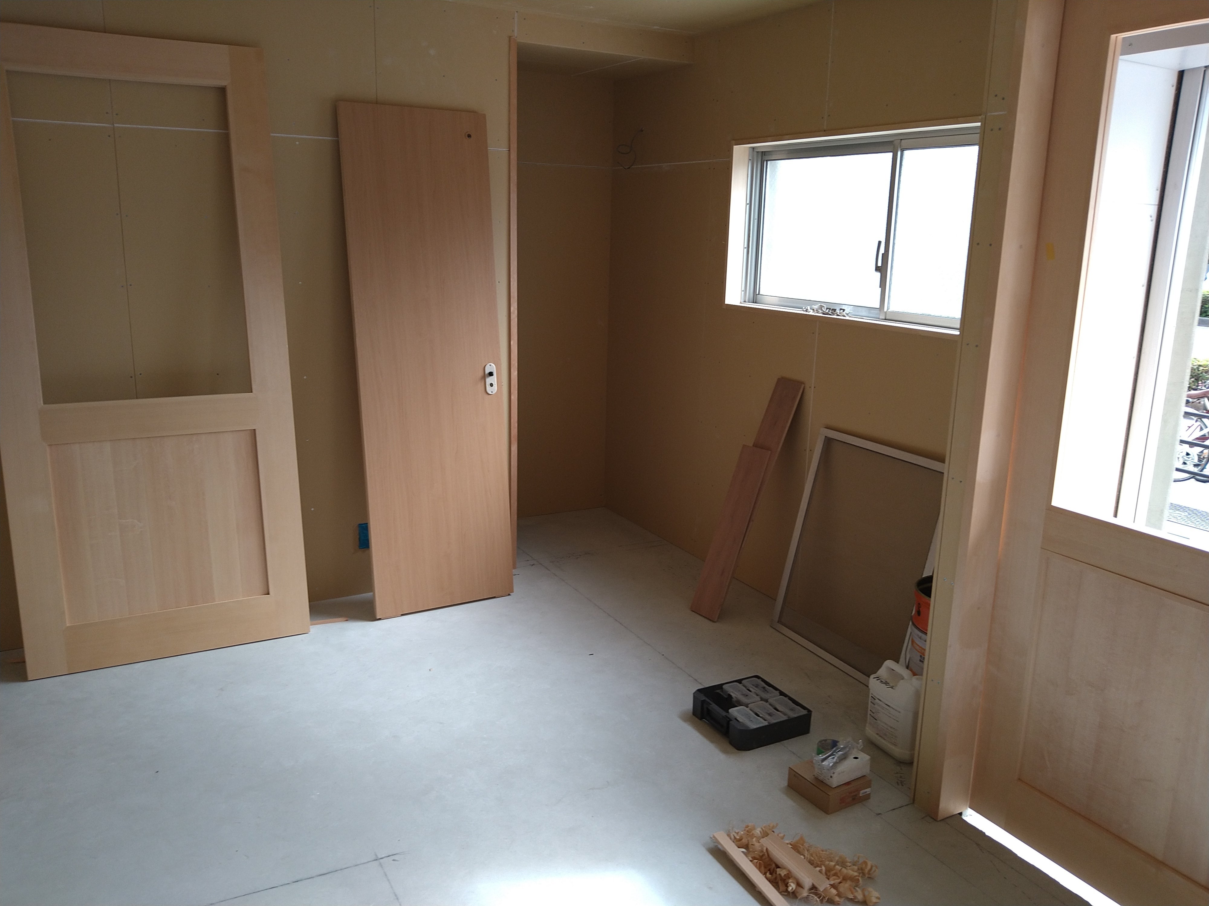 店内は間仕切りが完成し、クロスやフローリングを貼る前段階です。