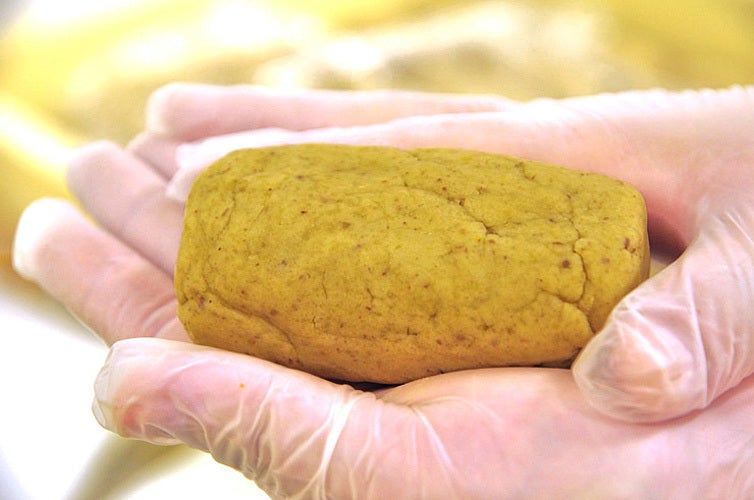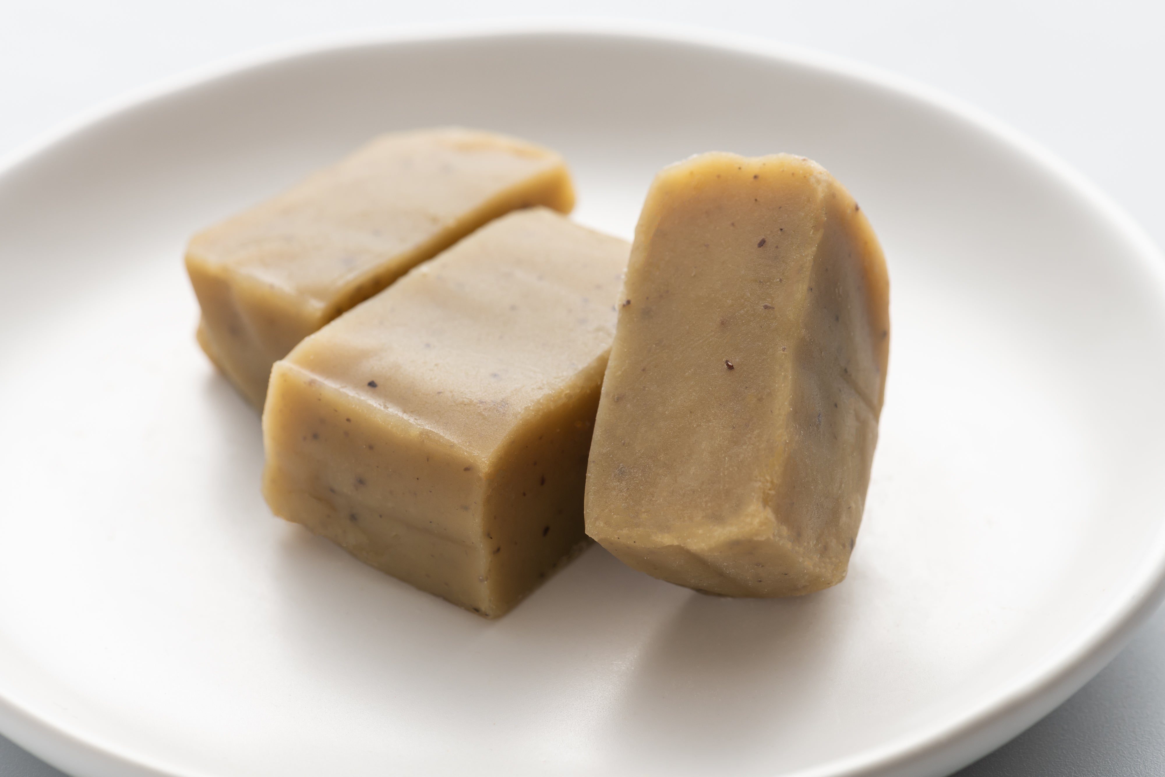 四万十のお山の栗をペーストにして、30%のお砂糖を加えて、キュッと固めただけのシンプルな栗キントンです。
