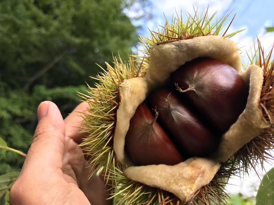 ▼『栗が笑う』と言われる状態の収穫間近の様子
