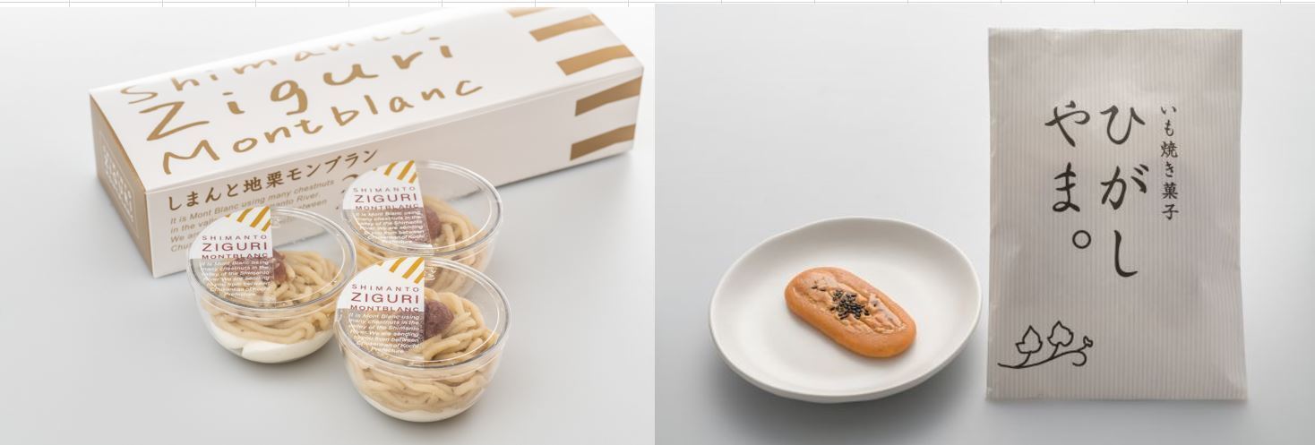 (四万十ドラマを代表する『しまんと地栗モンブラン』と『いも焼き菓子ひがしやま。』)