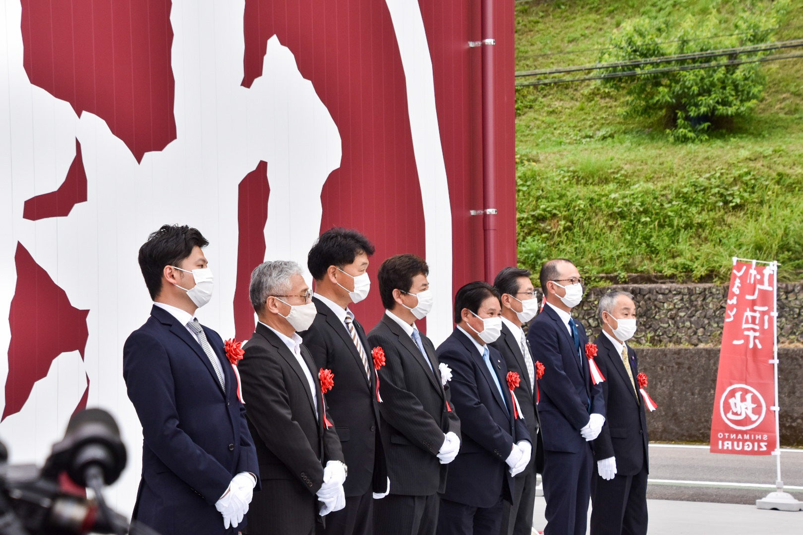 なんと、前日までの100%雨予報に反し式典中だけ曇という奇跡を起こし、シンボルマークの除幕式まで全てを滞りなく無事に執り行うことが出来ました。