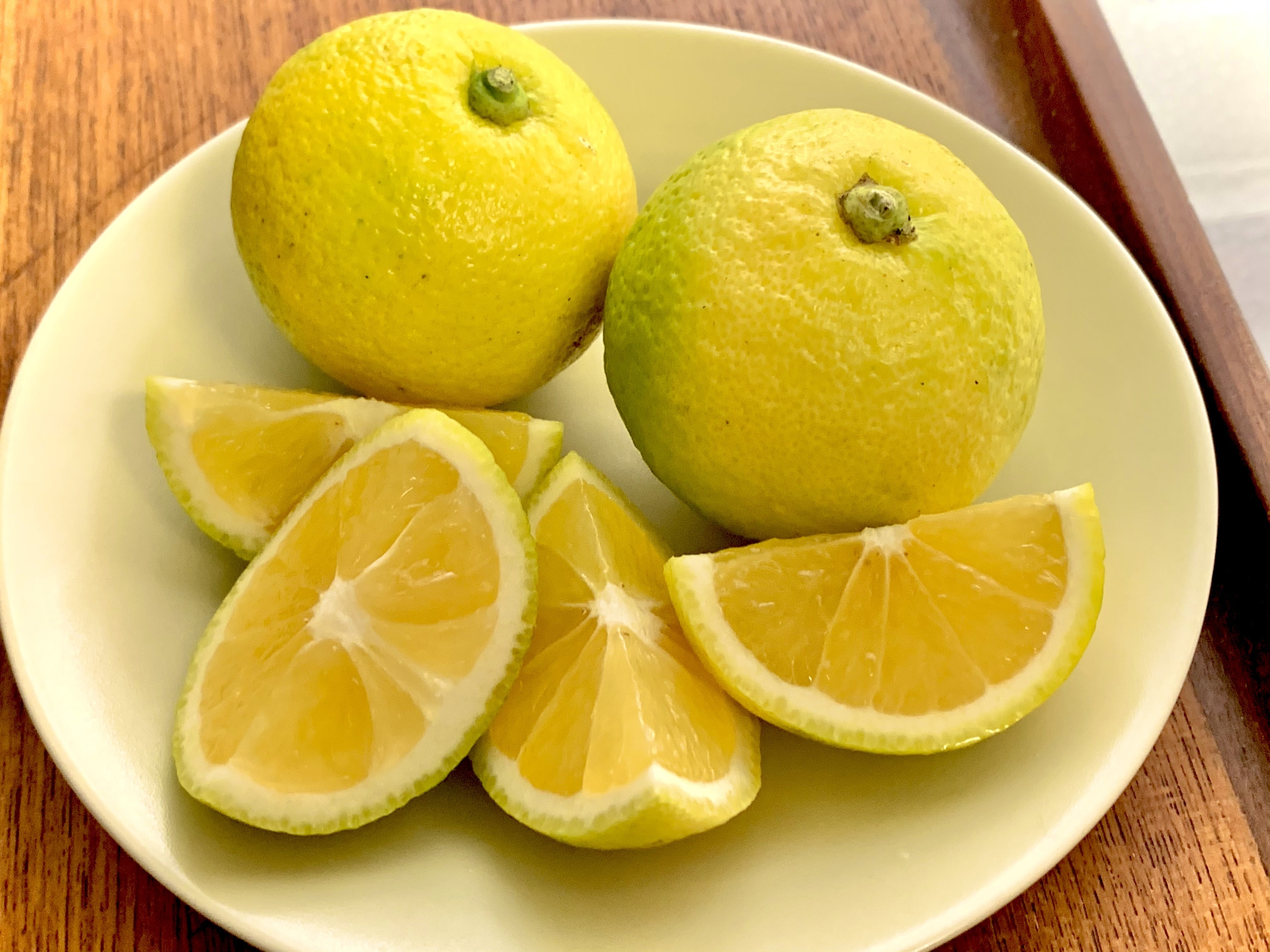 最近まで黄緑色だったカボスがさらに少しずつ色づいてきました!