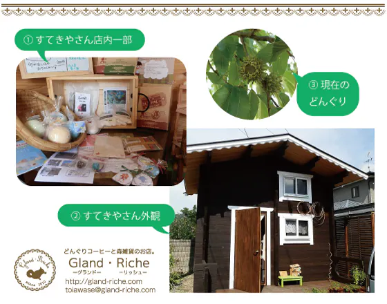 [①すてきやさんの店内][②すてきやさん外観][③現在のどんぐり]