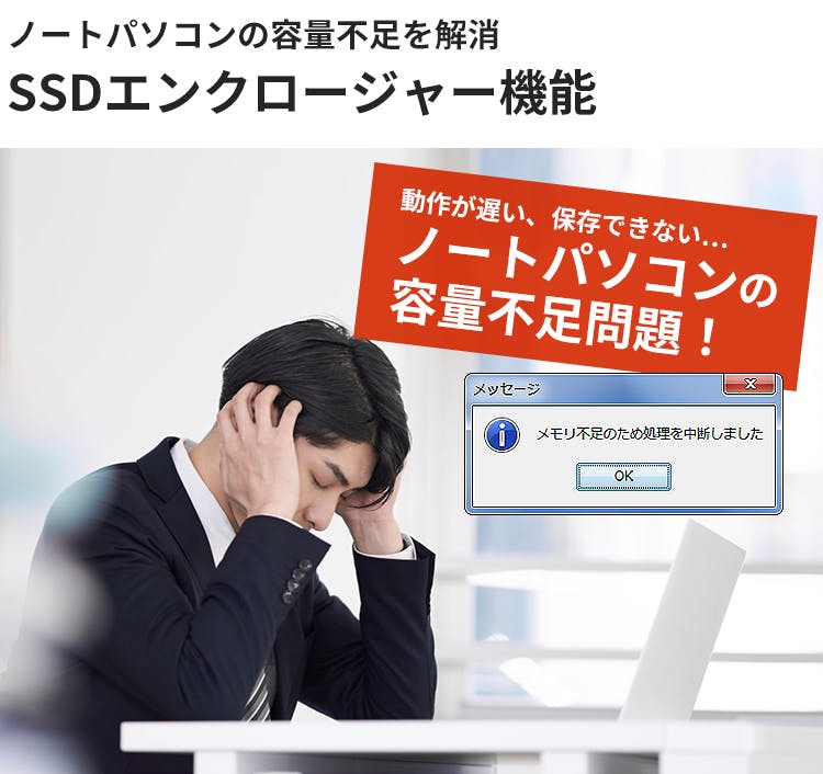 ノートパソコンユーザーにとって深刻なのが、容量不足。データが保存できなくなったり、動作が遅くなったりと、作業効率が大幅に低下する原因に。