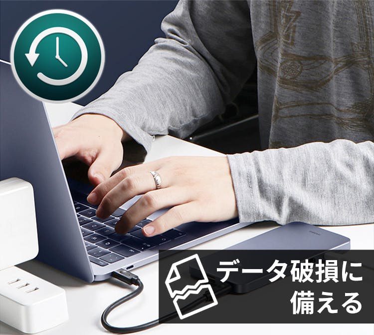 MacOSのバックアップ機能TimeMachineにも対応しています。Macに「Signature Pro」を接続し、TimeMachine用のディスクとして設定すると、バックアップが可能になります。