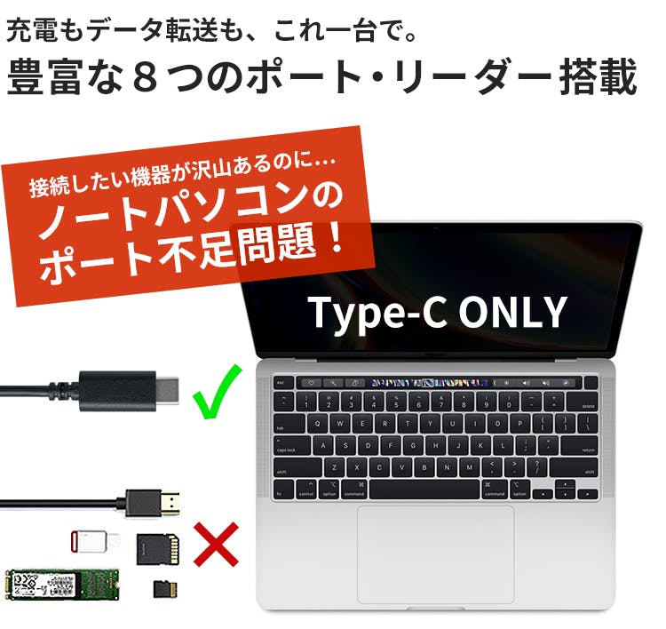 けれど、避けて通れないのが、ポート不足問題。近年では、搭載ポートはUSB-Cのみ、なんて製品も登場しています。