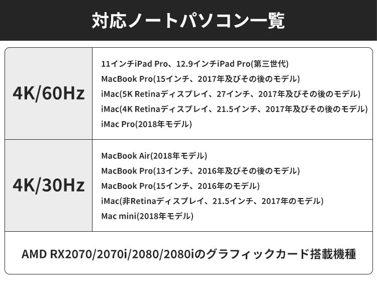 ※上記リスト以外のノートパソコンでも、出力端子がType-Cの場合は、映像出力が可能でございます。(映像の解像度は、ノートパソコンのスペックにより変わります。)