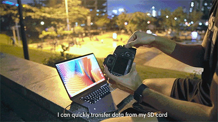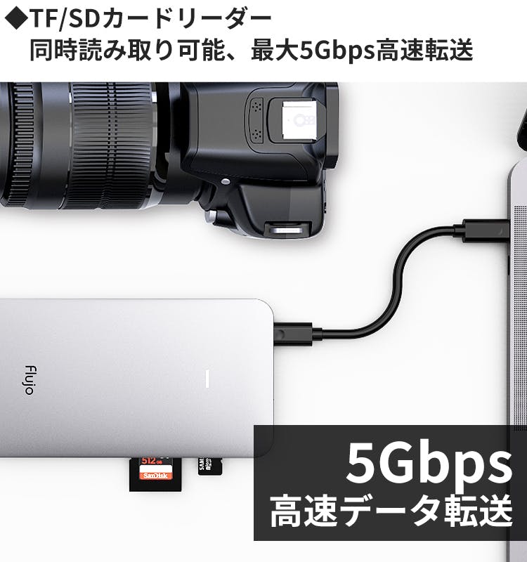 カメラユーザーに嬉しい!TF/SDカードリーダー搭載。最大5Gbps(理論値)の高速転送で、ストレスなくデータを転送することが可能です。